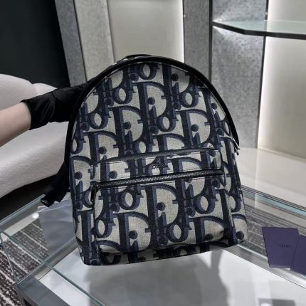 Dior Oblique Print Backpack – Iconic Monogram Canvas, Christian Dior Logo Stripe, Designer Backpack with Adjustable Straps