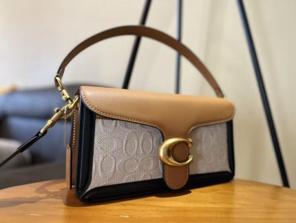 COACH C Logo Flap Bag – Tri-Color Design, Signature Canvas & Leather, Gold-Tone C Clasp, Designer Crossbody Bag