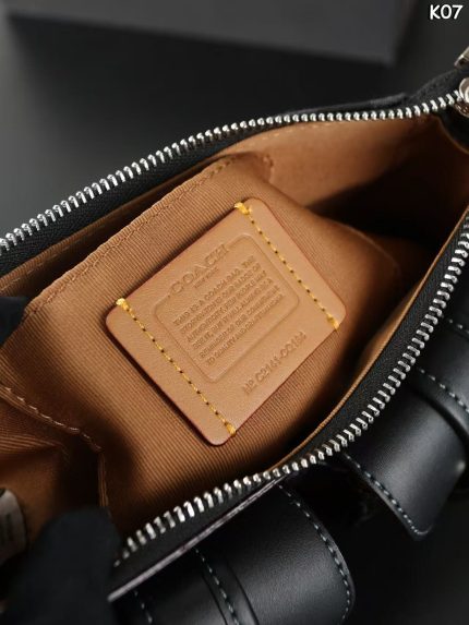 COACH Ashton Baguette 25 – Denim Canvas, Motorcycle-Style Buckles, Iconic Signature Print, Mini Crossbody Bag