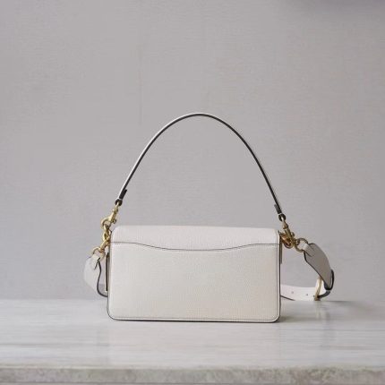 COACH C Logo Flap Bag – White Leather, Minimalist Design, Signature C Hardware, Designer Crossbody Bag