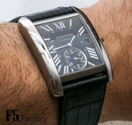 Cartier Tank Française – Men’s Stainless Steel Automatic Watch with Silver Guilloché Dial, Roman Numerals, and Black Alligator Strap