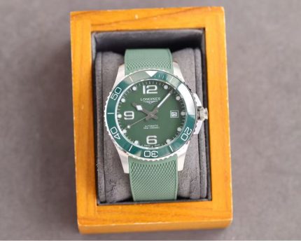 Longines HydroConquest – Men’s Stainless Steel Automatic Diver Watch with Green Dial, Rubber Strap, and Rotating Bezel