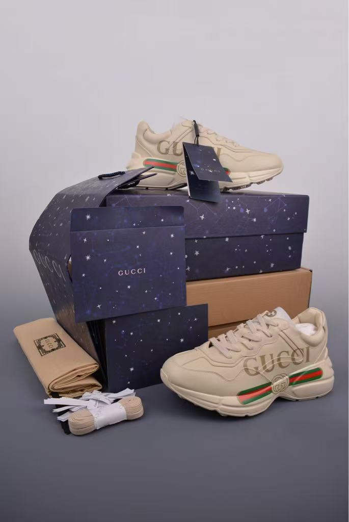 | Premium Beige Suede Upper with Textured Finish – Luxurious material that adds depth and a retro aesthetic. Signature Red & Green Web Stripe Across Side Panel – Iconic Gucci design element for instant brand recognition. White Perforated Mesh Panel for Breathability & Style – Enhances comfort while adding modern contrast. Gold-Tone GG Logo Metal Badge on Tongue – Signature hardware detail that elevates elegance and authenticity. Complete Original Packaging: Box, Dust Bag, Care Card & Tag – Full luxury presentation ideal for gifting or collection. |