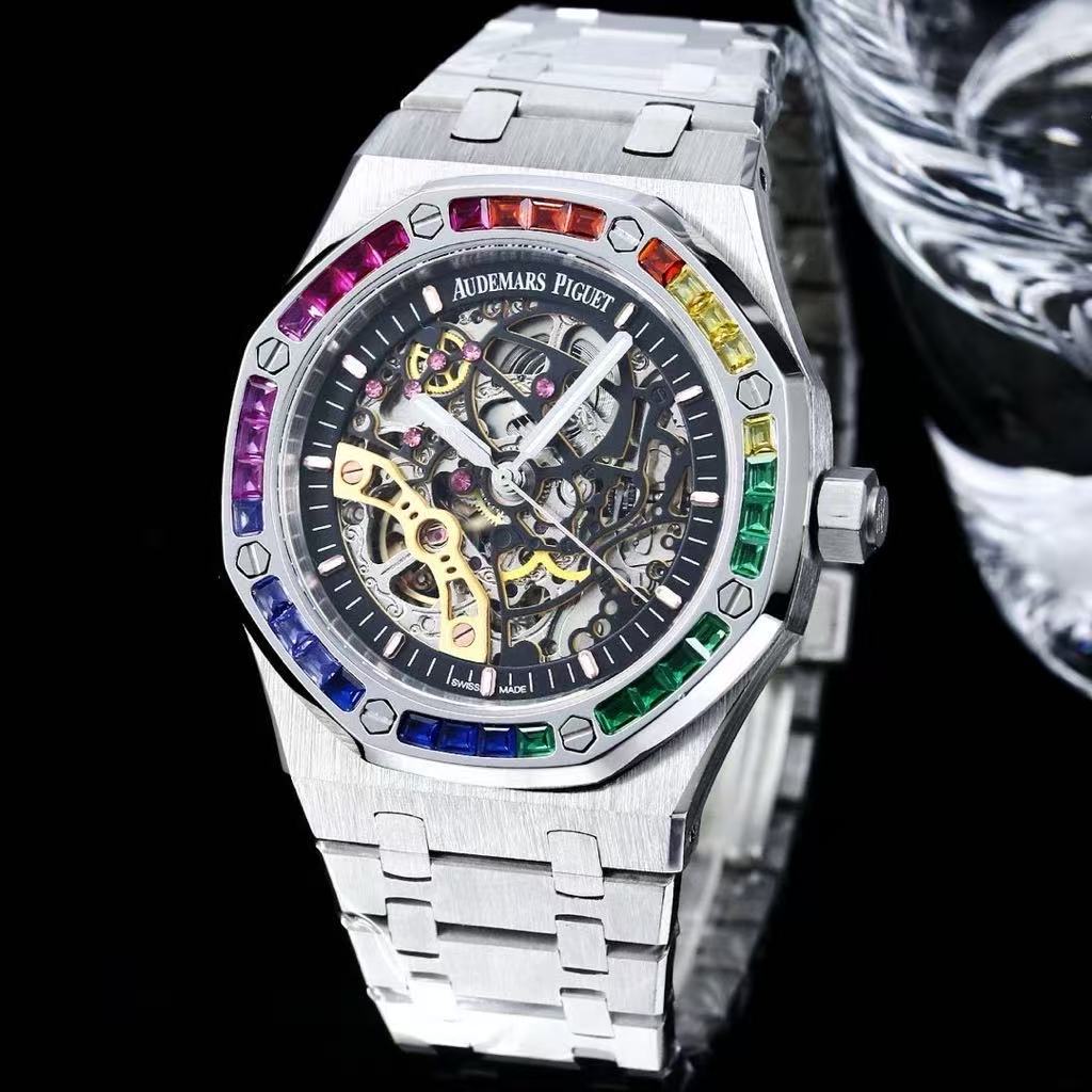 Audemars Piguet Royal Oak – Men’s Rainbow Skeleton Watch with 18K Rose Gold Case, Gem-Set Bezel, and Integrated Bracelet