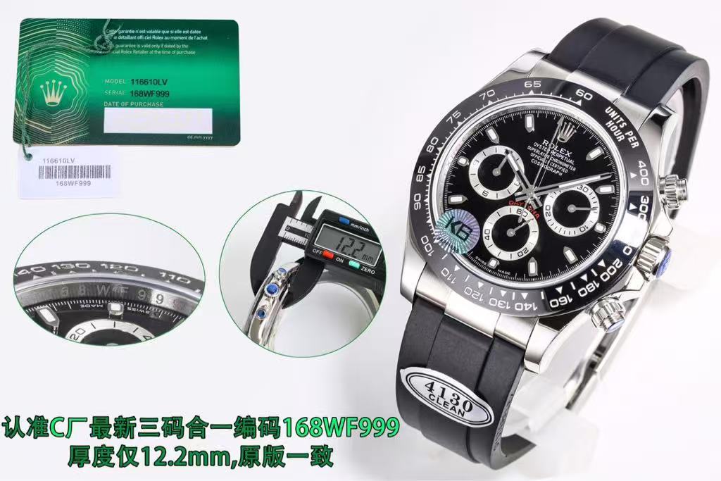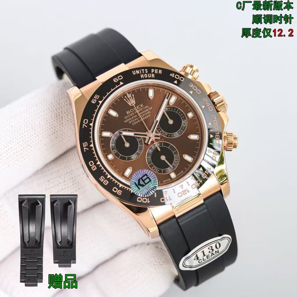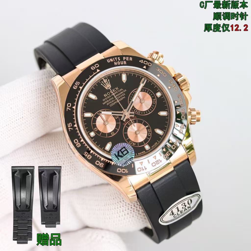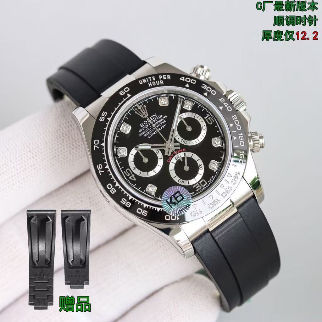Luxury Daytona-Style Chronograph Watch – Black Dial, Ceramic Bezel, Rubber Strap, Gift Includes Extra Links