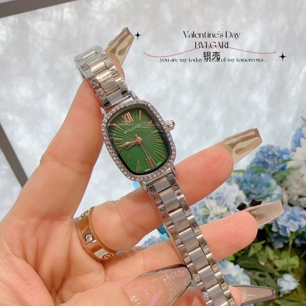 The iconic BVLGARI logo is subtly placed below the 12 o’clock position, reinforcing the brand’s signature identity. Powered by a reliable quartz movement, these timepieces ensure accurate timekeeping and low maintenance—ideal for daily wear or special occasions.