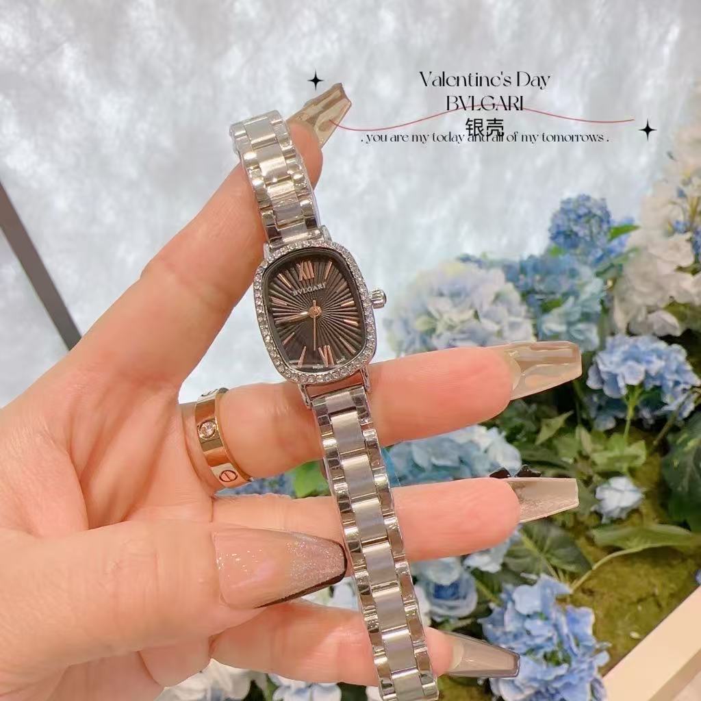The iconic BVLGARI logo is subtly placed below the 12 o’clock position, reinforcing the brand’s signature identity. Powered by a reliable quartz movement, these timepieces ensure accurate timekeeping and low maintenance—ideal for daily wear or special occasions.