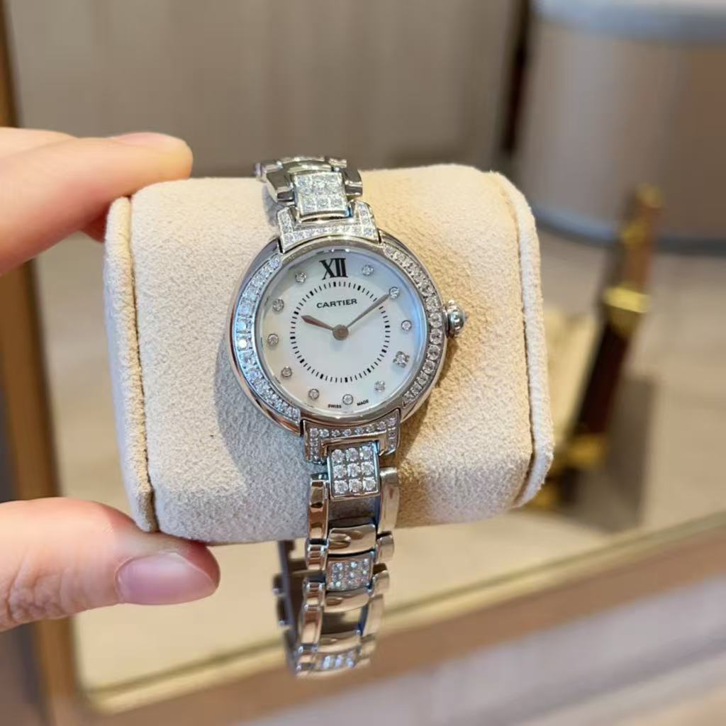 Elevate your elegance with the Cartier Ballon Bleu, a timeless masterpiece of refined design and luxurious craftsmanship. This exquisite women’s timepiece features a round case crafted from 18K white gold, fully paved with brilliant-cut diamonds around the bezel and integrated bracelet—creating a dazzling display of light and sparkle that captures attention from every angle.