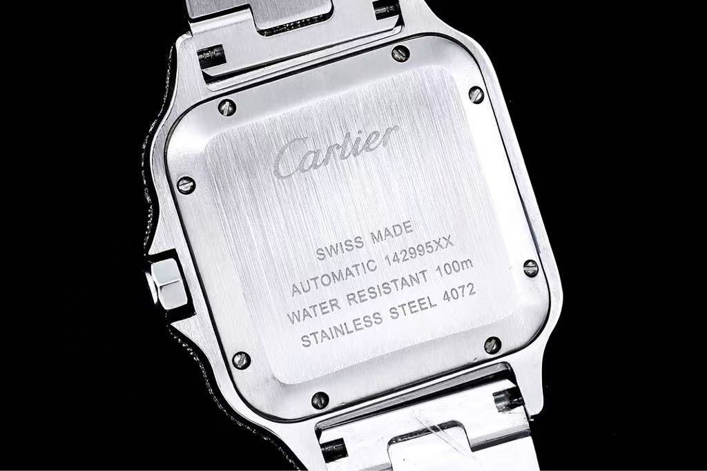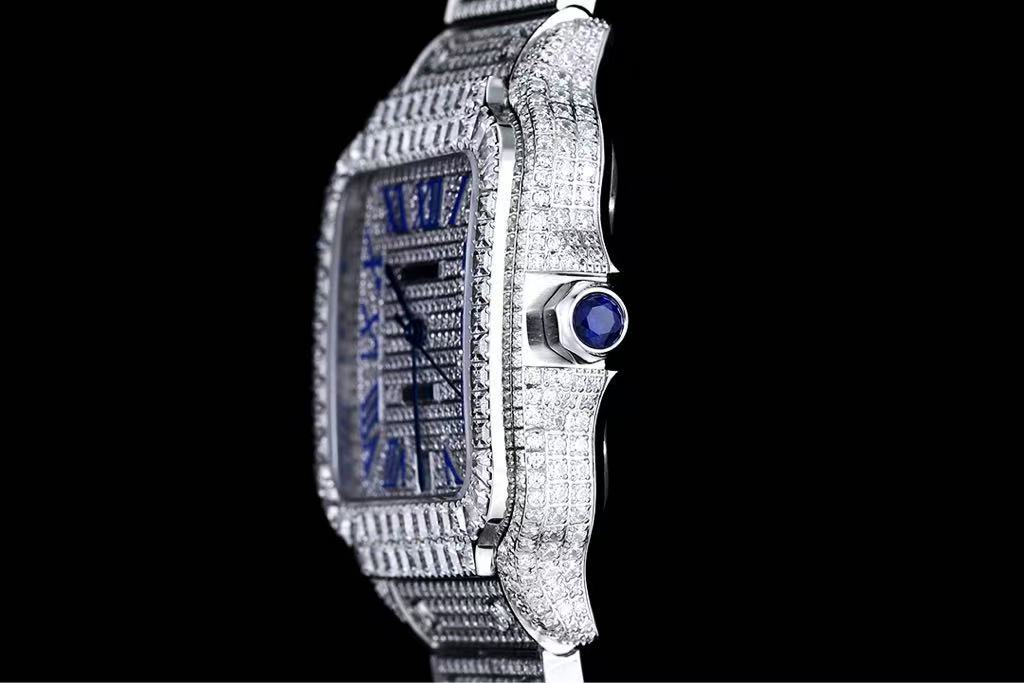 Cartier Santos-Dumont – Men’s Fully Diamond-Paved Automatic Watch with Blue Roman Numerals and 18K White Gold Case