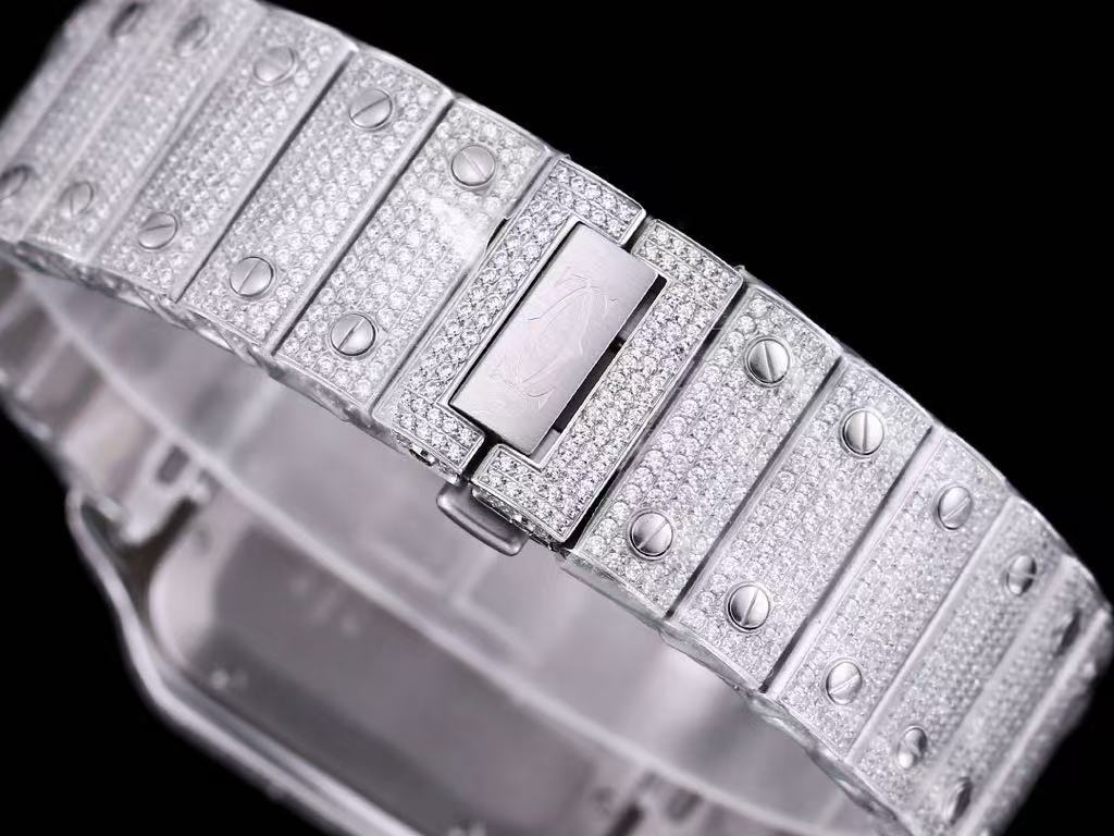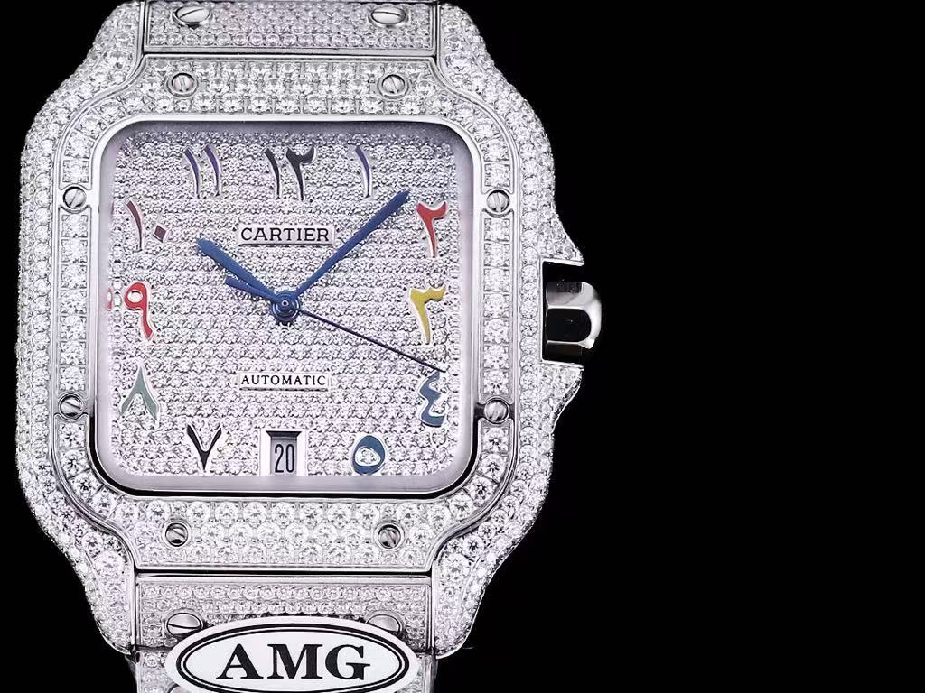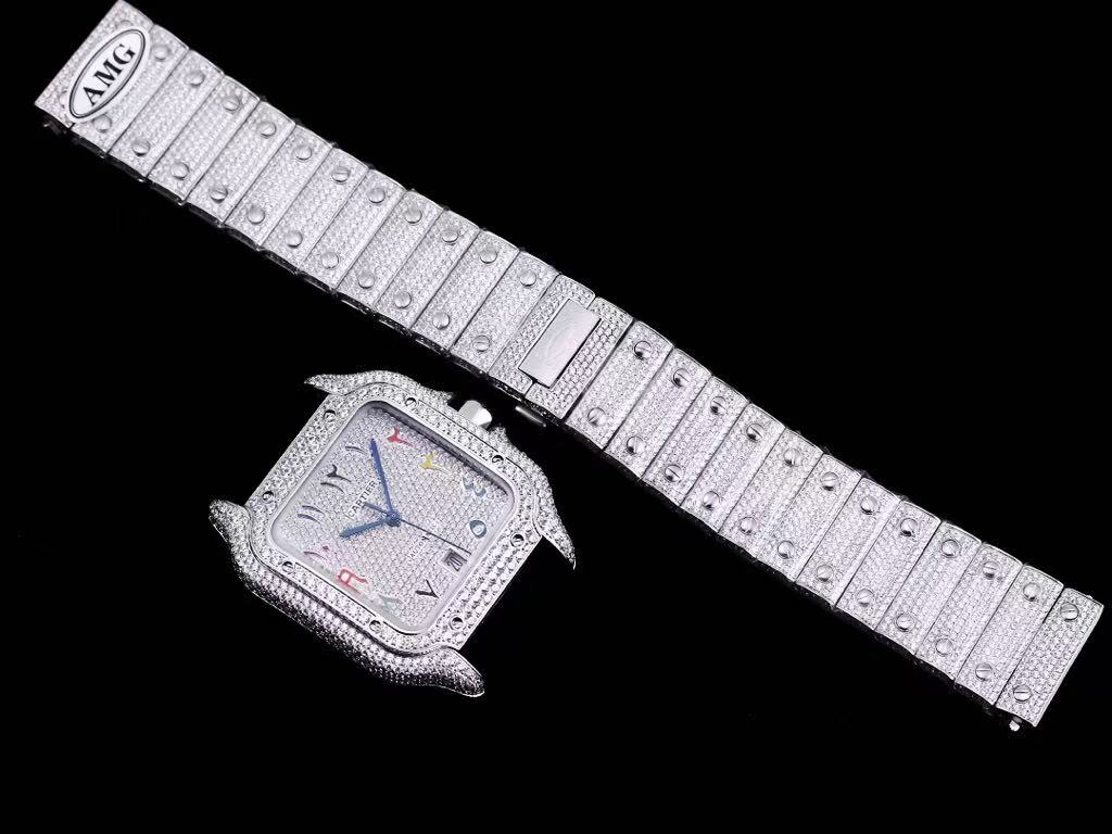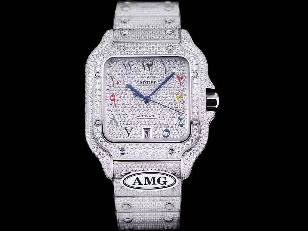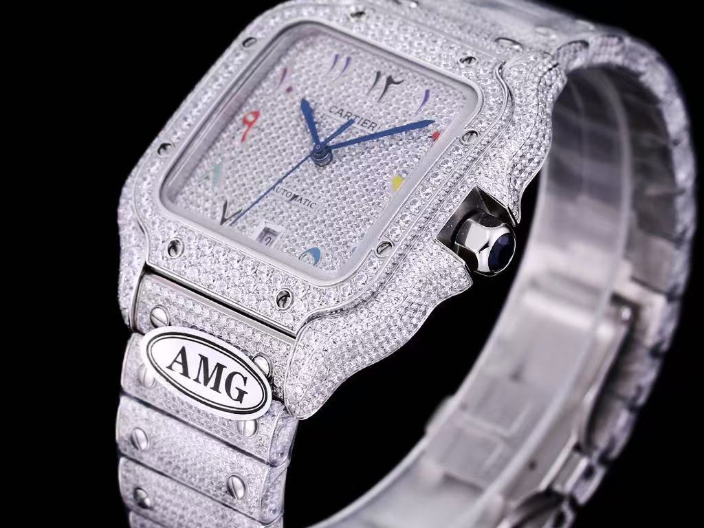 Cartier Santos-Dumont – Men’s Fully Diamond-Paved Automatic Watch with Colorful Arabic Numerals and AMG Logo Bracelet