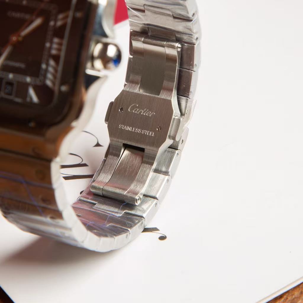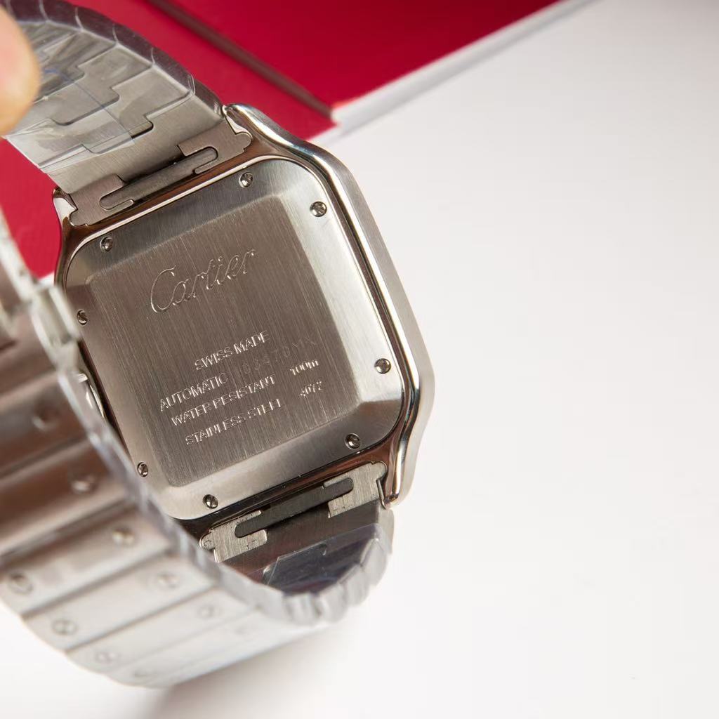 Elevate your style with the Cartier Santos-Dumont, a bold expression of timeless elegance and Swiss precision. This iconic timepiece features a square-shaped case crafted from polished stainless steel, embodying the classic Santos silhouette with its clean lines, beveled edges, and signature screw-down lugs—inspired by the pioneering spirit of early aviation. The watch is powered by a reliable automatic mechanical movement, offering self-winding convenience and accurate timekeeping.