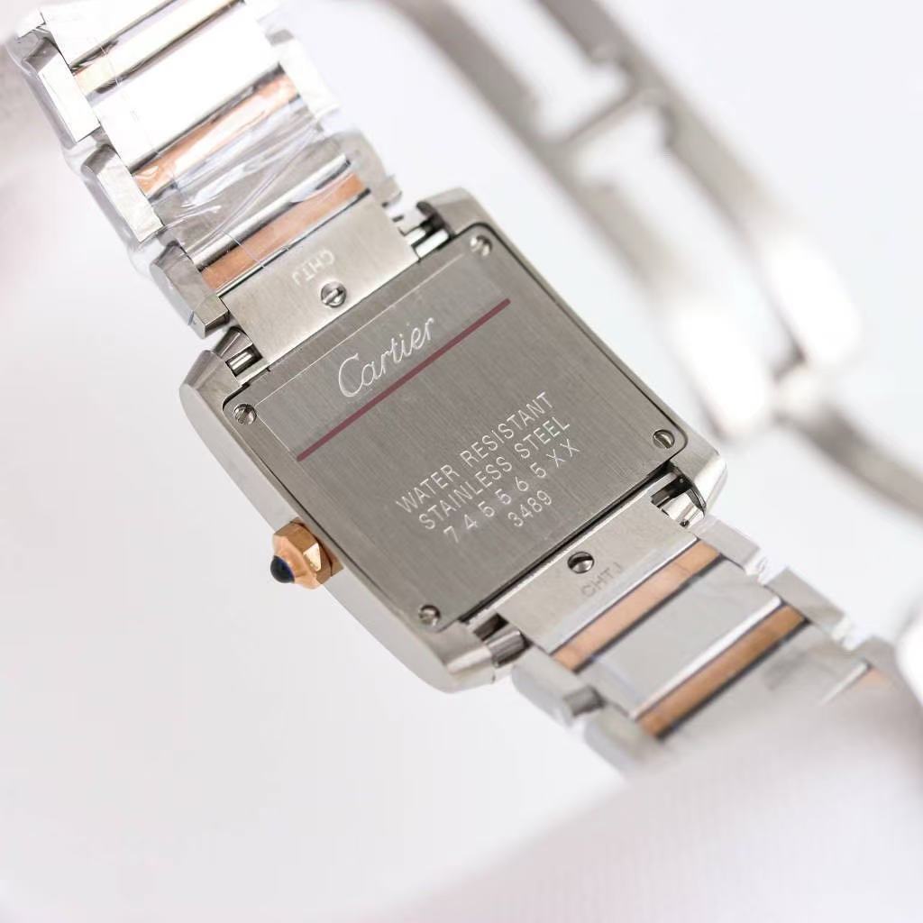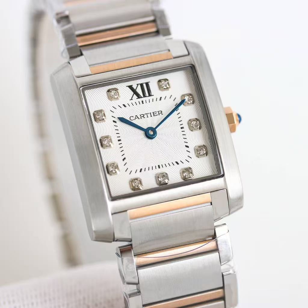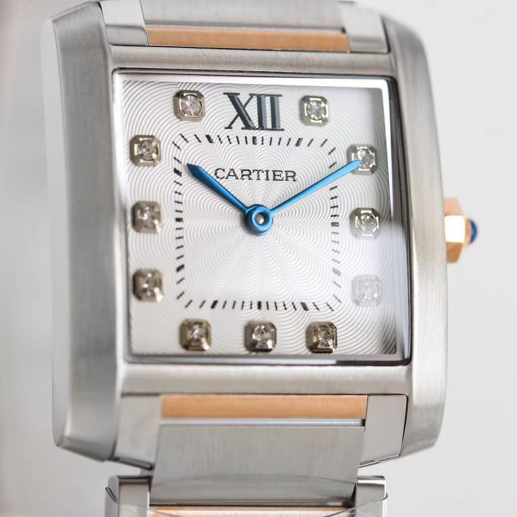 Cartier Tank Française – Women’s Two-Tone Stainless Steel & Rose Gold Watch with Diamond Accents and Integrated Bracelet (Two Sizes Available)