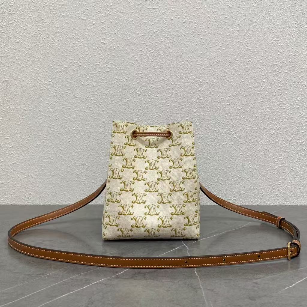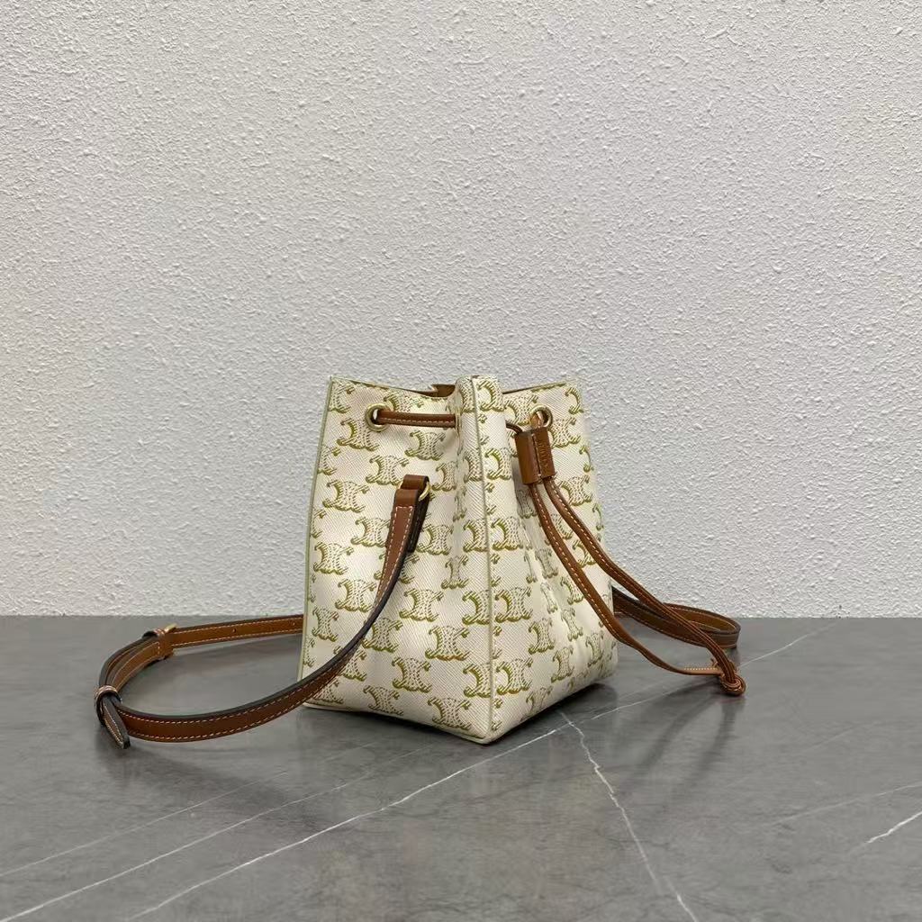 Celine Classic Monogram Drawstring Bucket Bag – Iconic Double C Pattern, Canvas Construction, Designer Crossbody with Adjustable Strap