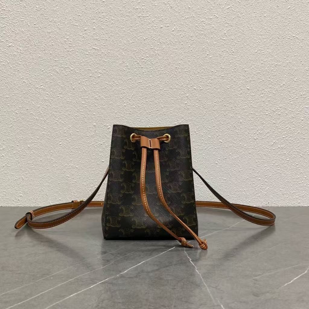 Step into timeless elegance with the Celine Classic Monogram Drawstring Bucket Bag — a bold reimagining of vintage design through iconic monogram printing and architectural craftsmanship. Crafted from premium monogram-coated canvas, this compact crossbody bag features a durable, artistic pattern that captures the spirit of Celine’s heritage — blending retro charm with modern sophistication.