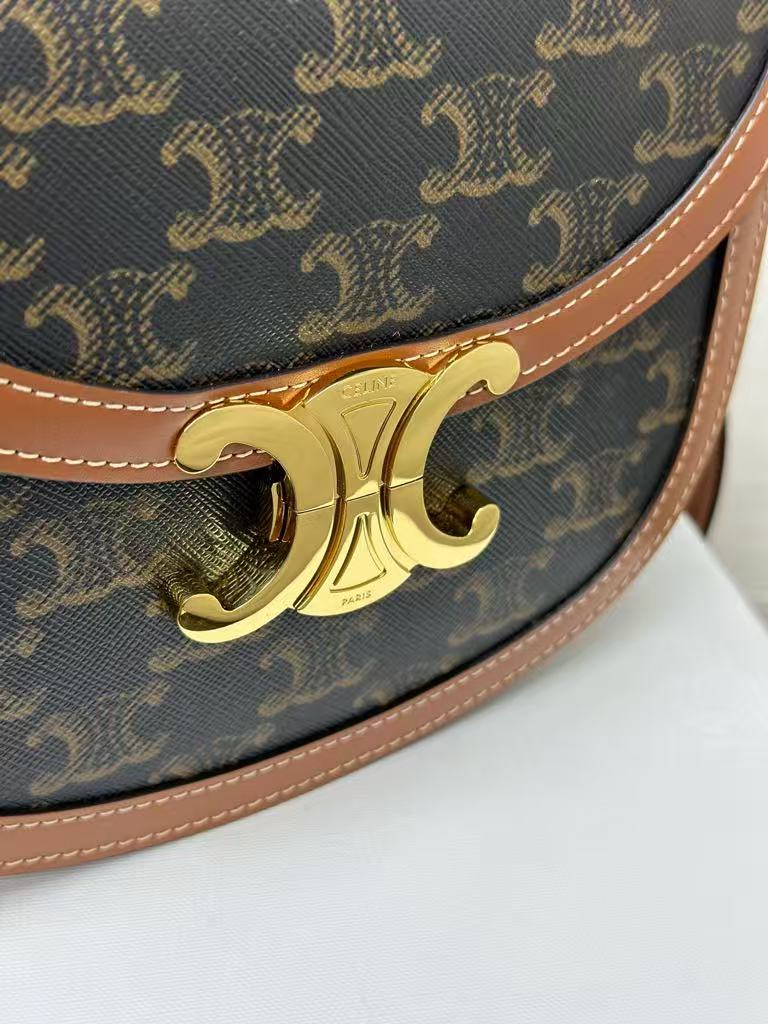 Celine Classic Monogram Saddle Bag – Iconic Double C Pattern, Vintage-Inspired Silhouette, Designer Crossbody with Gold-Tone Clasp