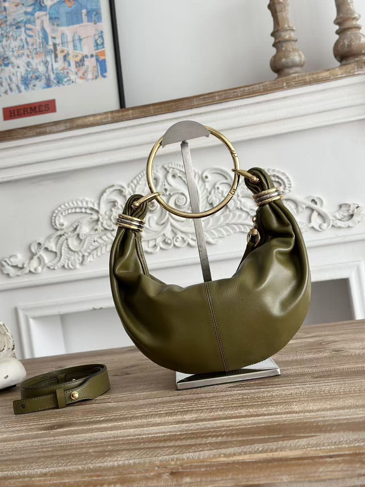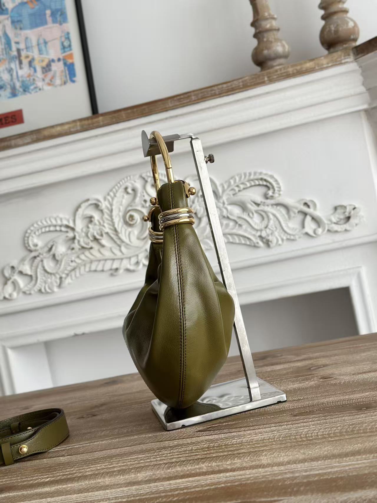 The iconic gold-tone circular ring handle is more than just a detail — it’s a statement piece that adds drama and sophistication to every look. With its soft, supple structure, the bag offers both comfort and flexibility, making it perfect for daily wear or evening events.