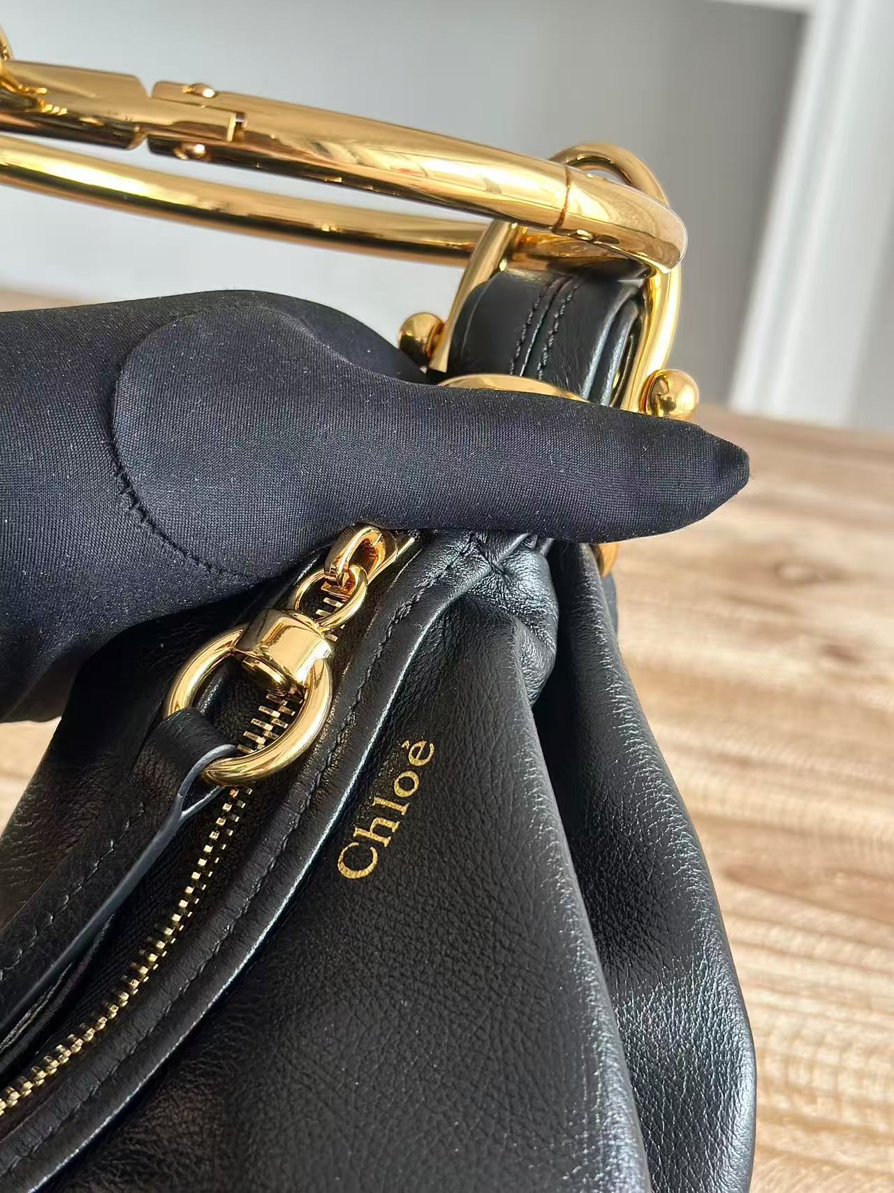 The iconic gold-tone circular ring handle is more than just a detail — it’s a statement piece that adds drama and sophistication to every look. With its soft, supple structure, the bag offers both comfort and flexibility, making it perfect for daily wear or evening events.