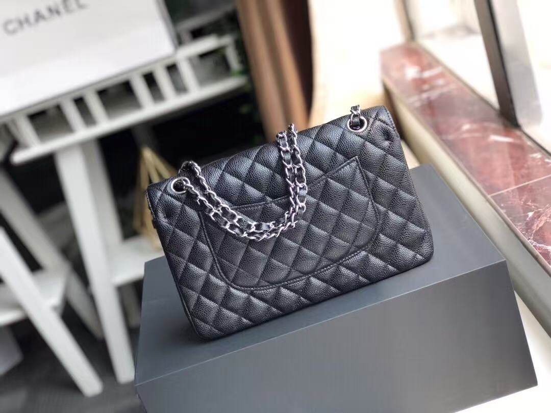 Chanel-Style Classic Flap Bag – Black Caviar Leather with Silver-Tone CC Logo & Timeless Quilted Design