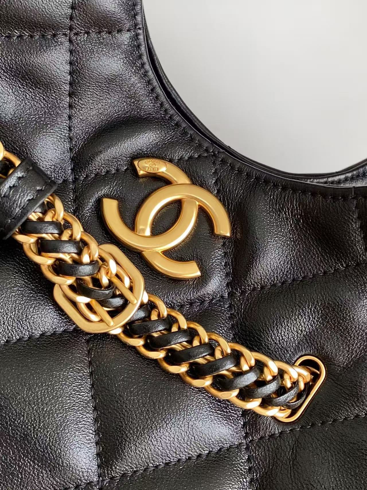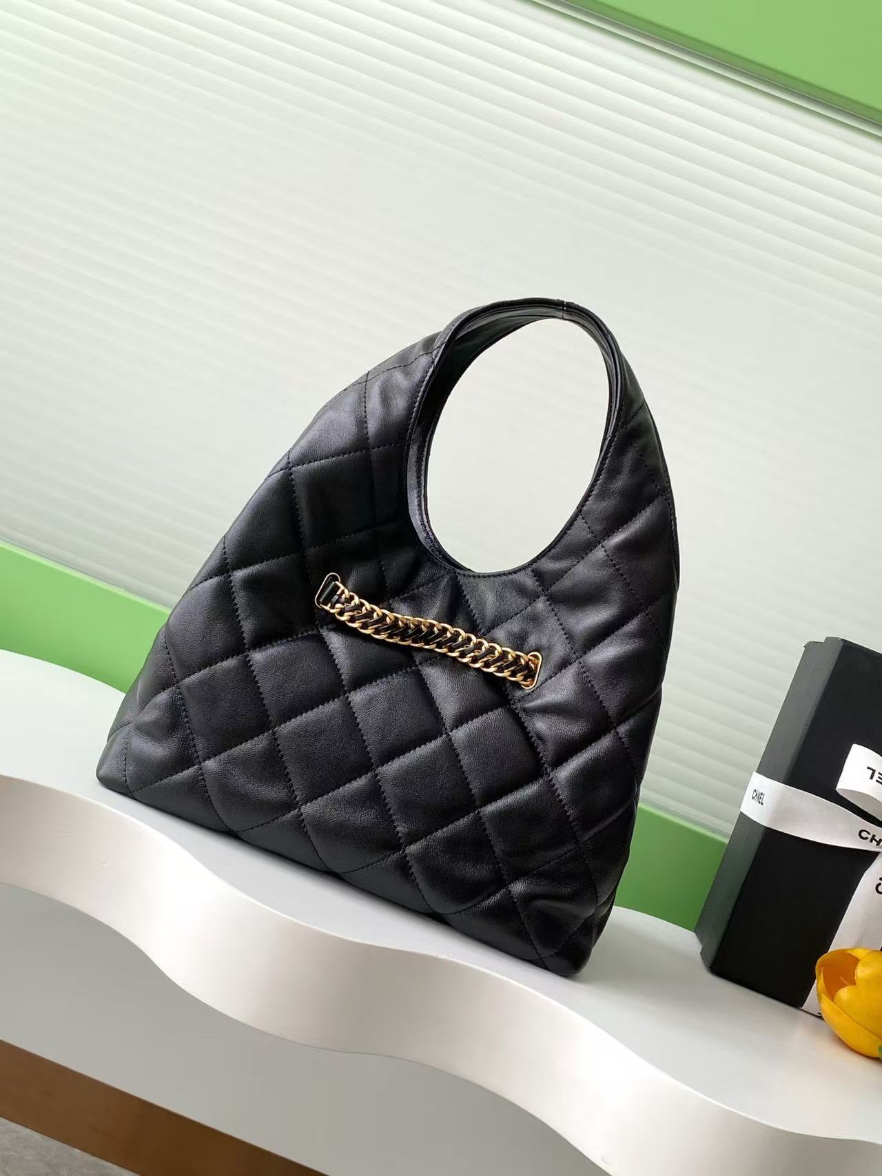 Chanel-Style Hobo Bag – Quilted Leather with Gold-Tone Chain & CC Logo