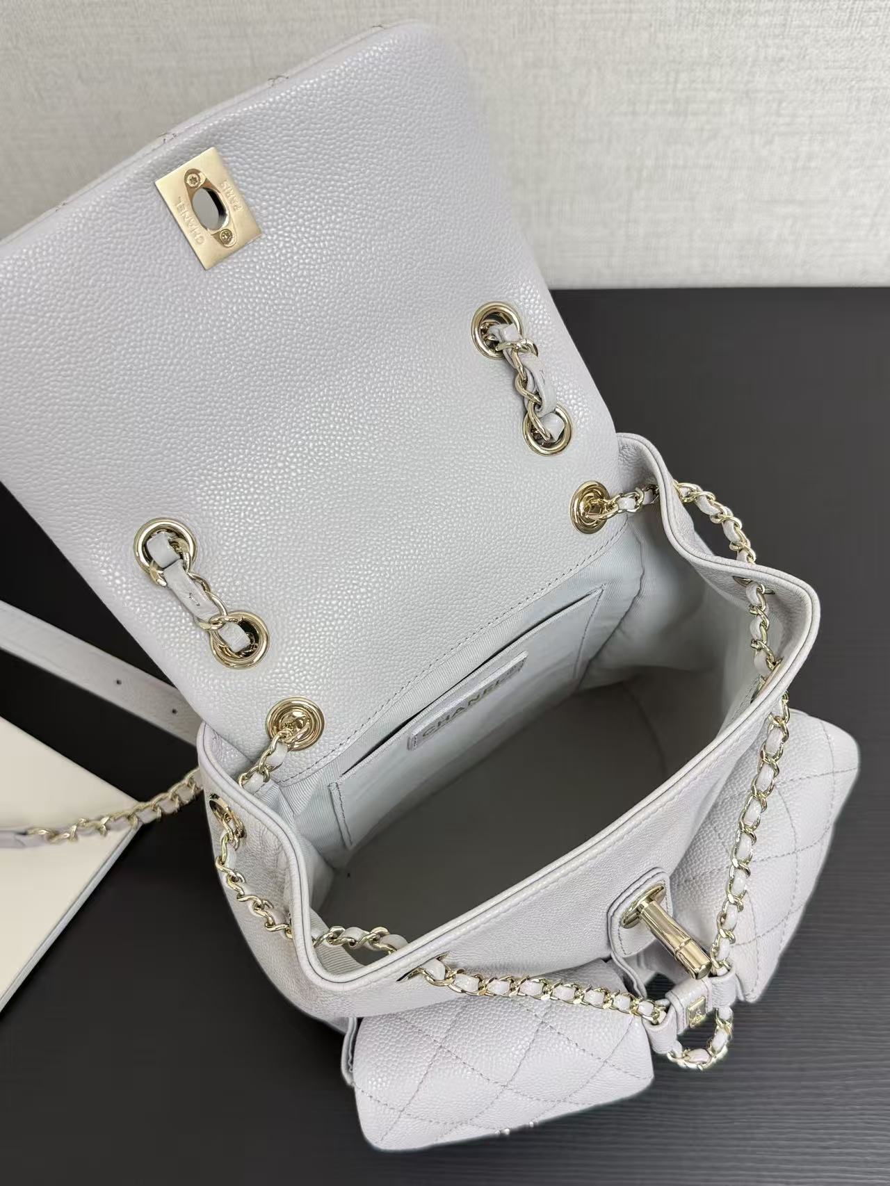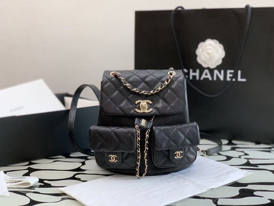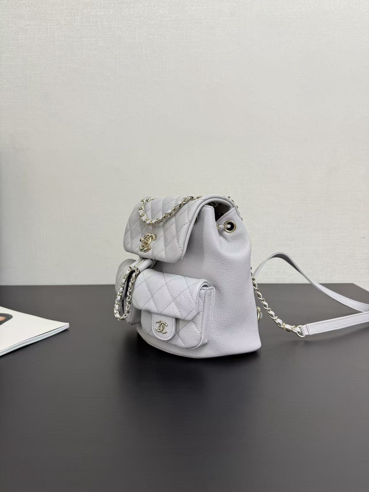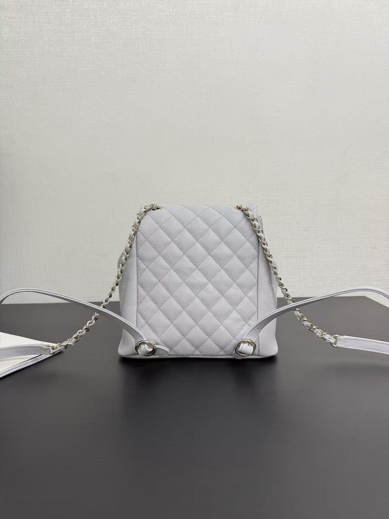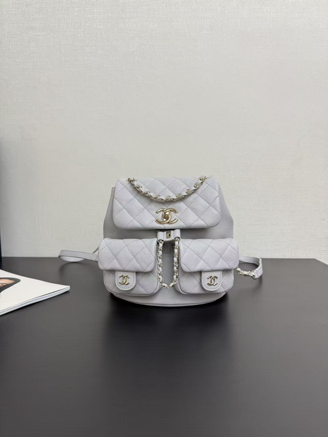 Chanel-Style Mini Backpack – Quilted Leather with Dual CC Logo Pockets & Chain Detail (Multi-Color Available)