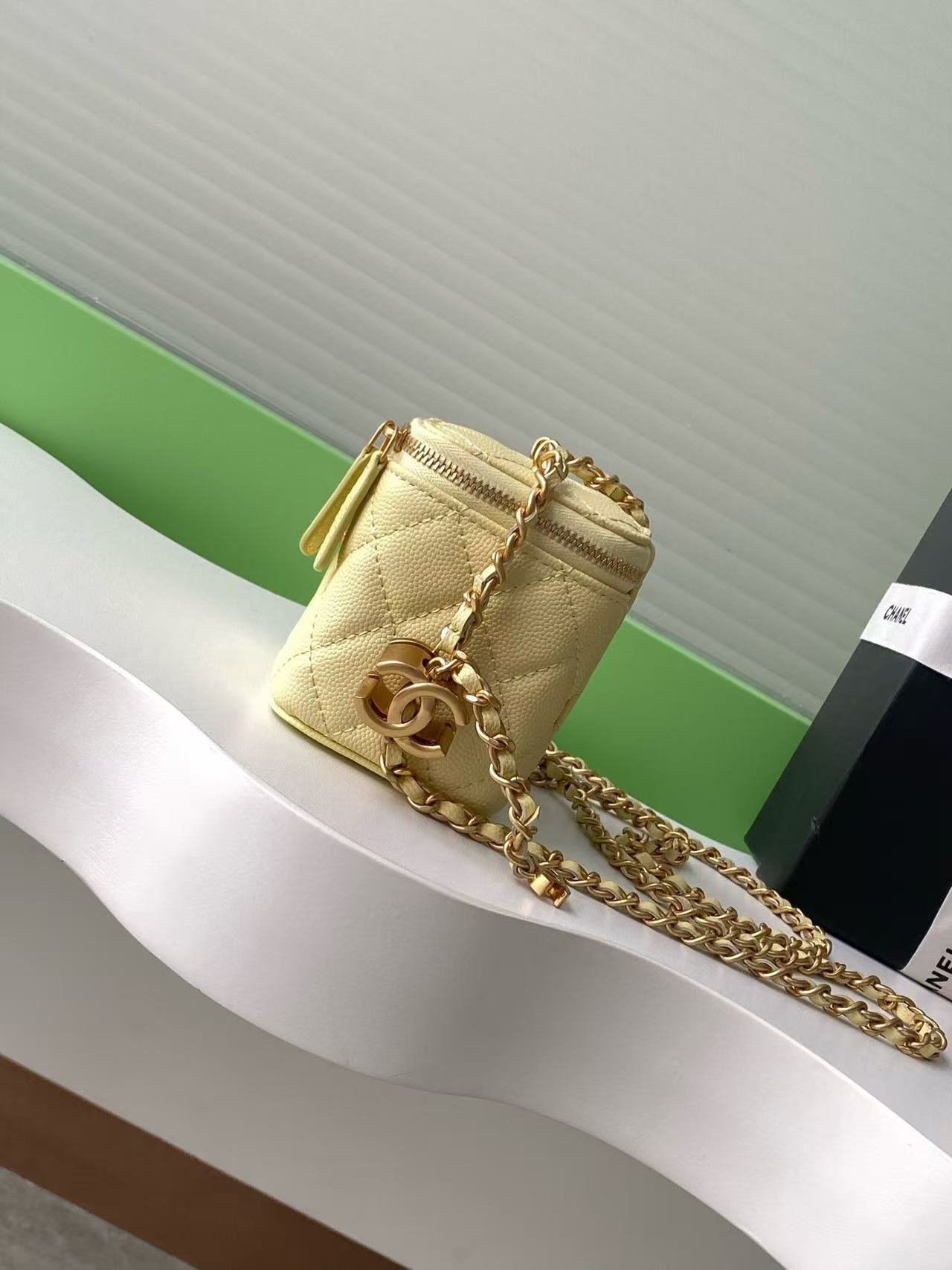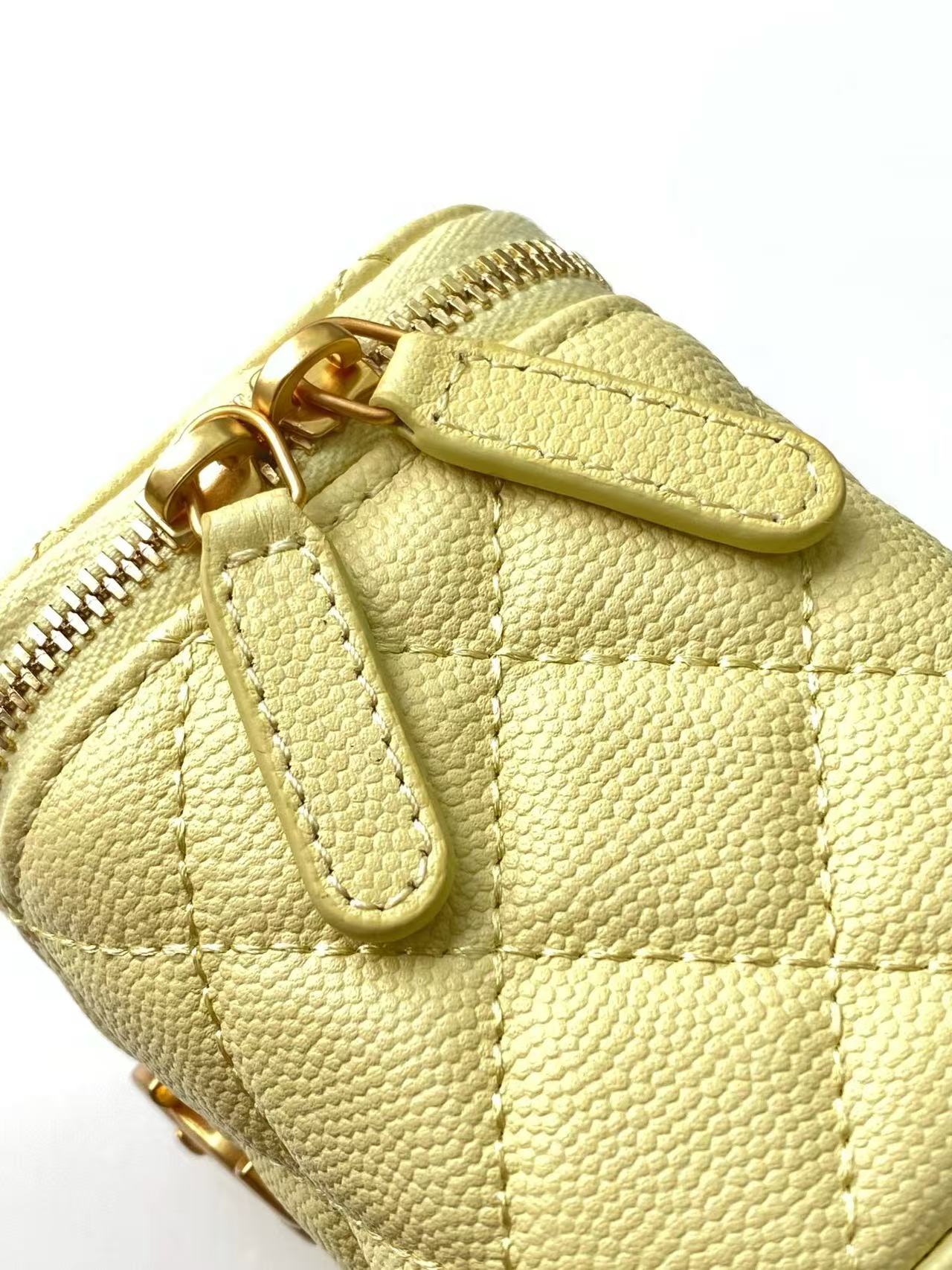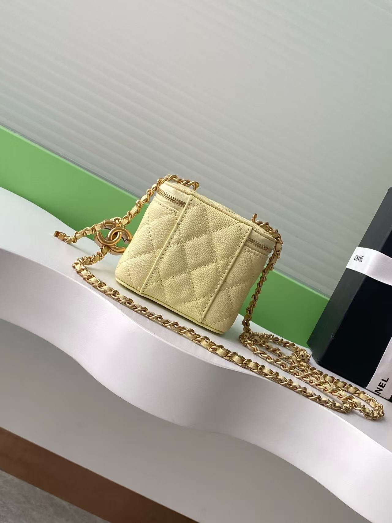 Chanel-Style Mini Box Bag – Quilted Caviar Leather with Gold-Tone Chain & CC Logo (6 Colors Available)