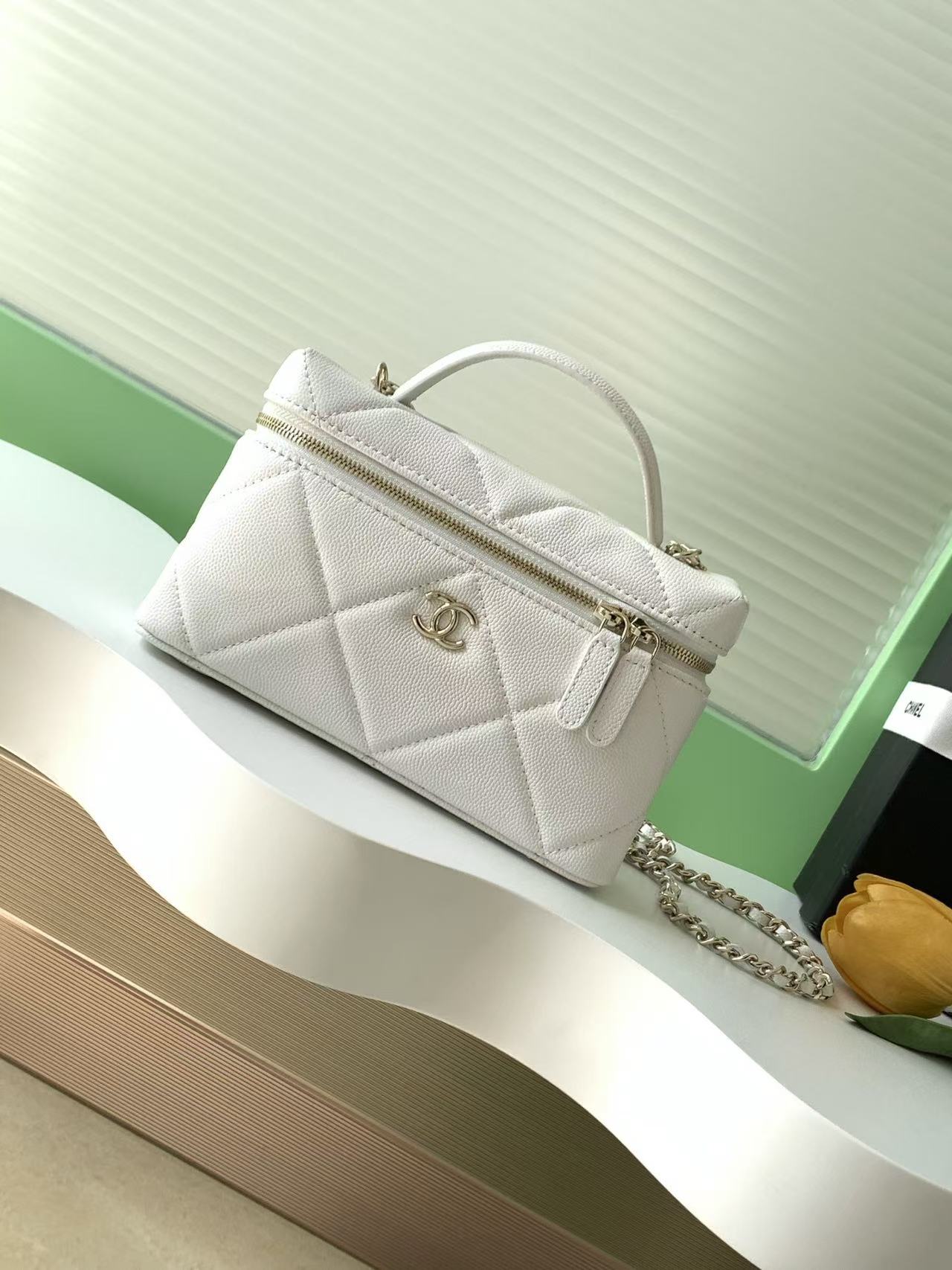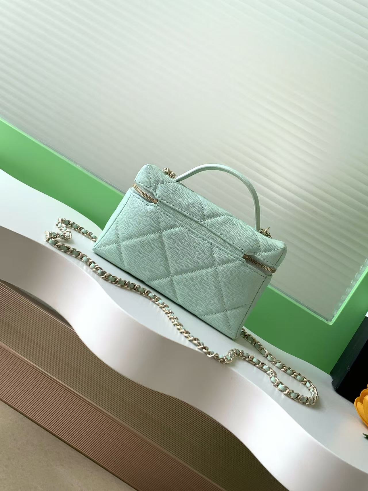 Chanel-Style Mini Box Bag – Quilted Caviar Leather with Top Handle & Gold-Tone Chain (Multi-Color Available)