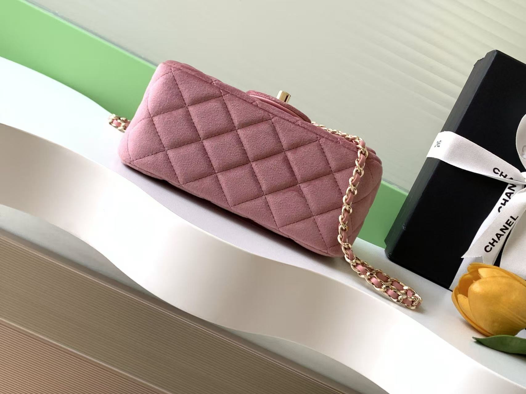 Chanel-Style Velvet Flap Bag – where softness meets sophistication, one stitch at a time.