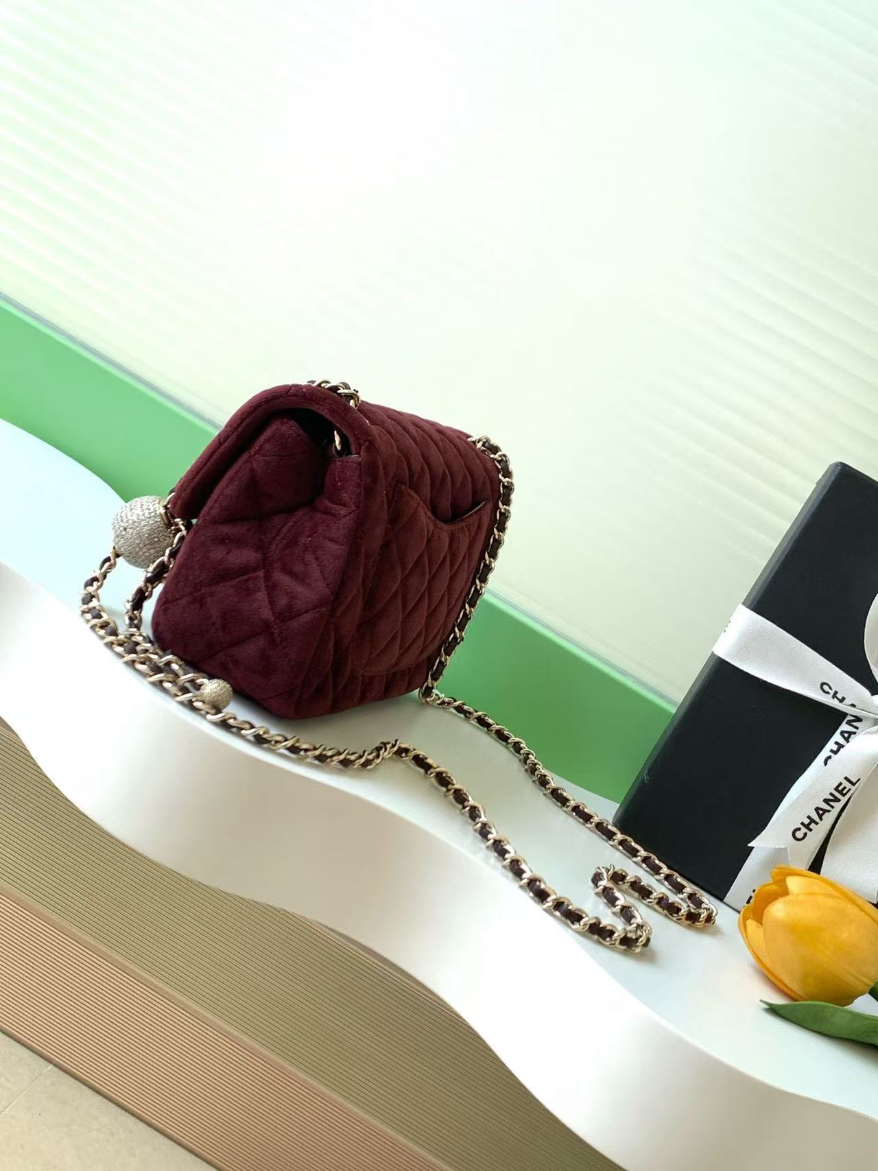 Step into timeless elegance with the Chanel-Style Velvet Flap Bag — a luxurious reimagining of the iconic classic, crafted from premium velvet fabric, featuring iconic diamond quilting, gold-tone chain strap, and a dazzling pearl ball charm. Inspired by Coco Chanel’s enduring legacy, this mini flap bag blends soft texture, bold color, and signature details for a look that is both refined and statement-making.