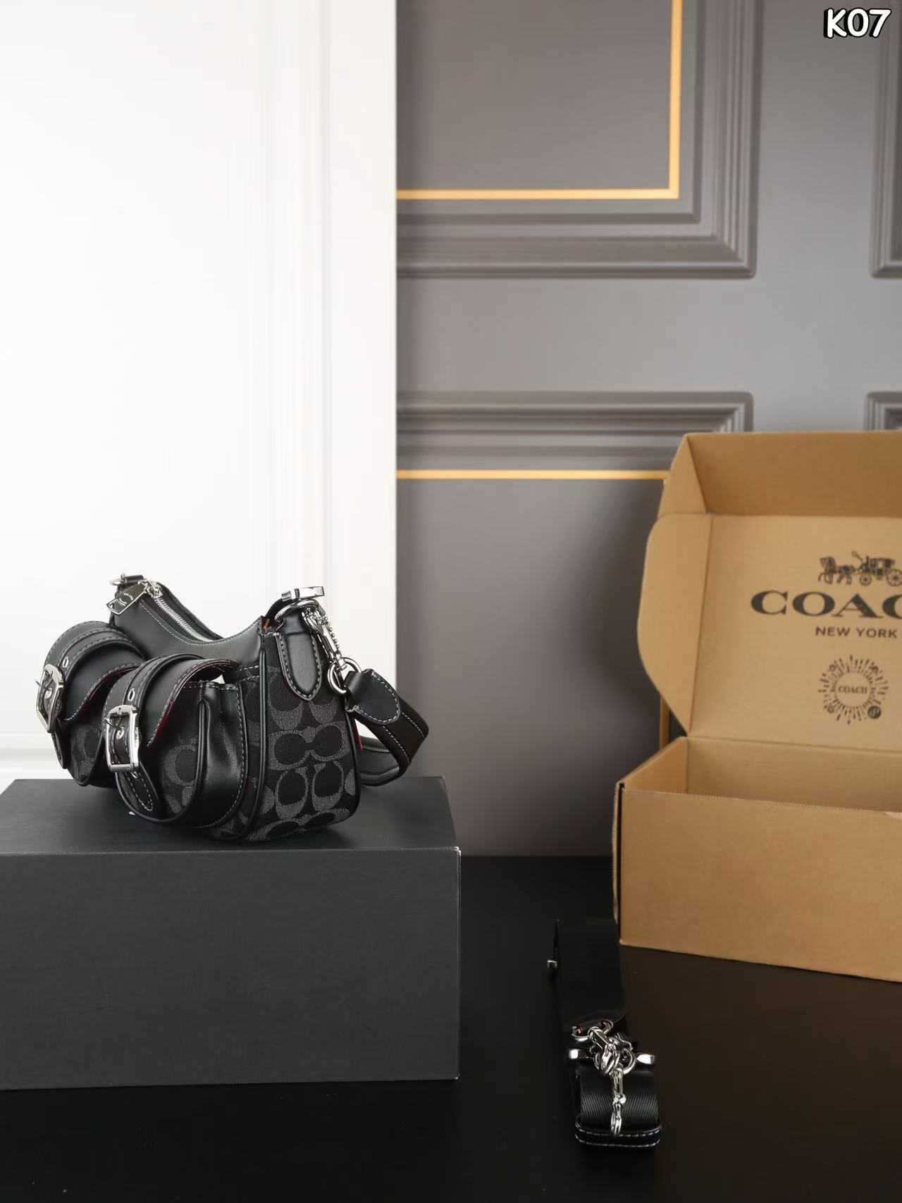 Step into urban sophistication with the COACH Ashton Baguette 25 — a bold reimagining of classic American style and modern edge. Crafted from premium black denim canvas featuring the iconic COACH Signature print, this mini crossbody bag blends casual cool with timeless luxury.