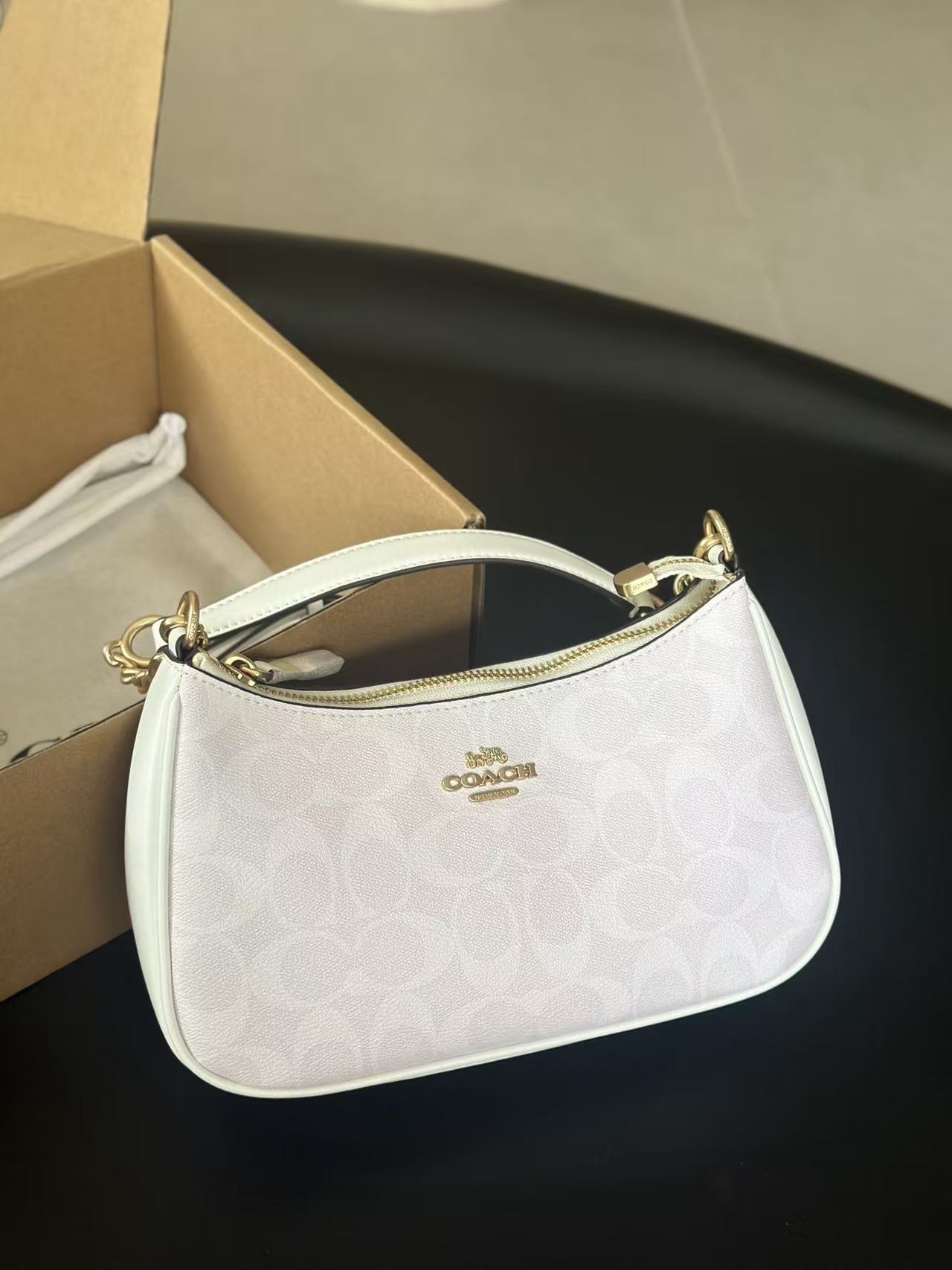 With an adjustable shoulder strap, it can be worn crossbody, over the shoulder, or even clipped to a larger bag for layered styling. The signature COACH horse and carriage logo in gold-tone hardware adds a subtle brand statement — a detail that speaks volumes without overpowering your style.