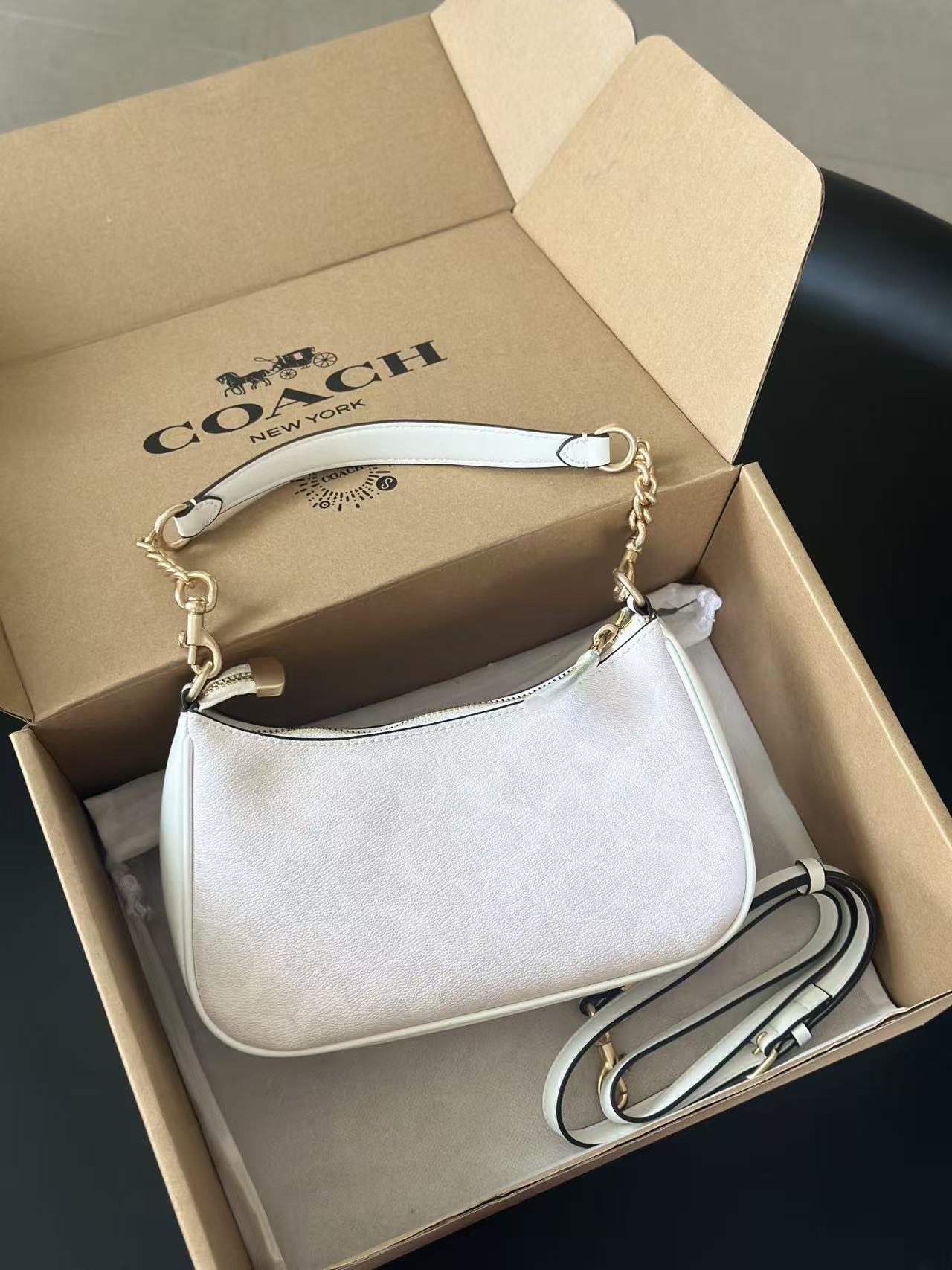 Step into pure elegance with the COACH Mini Leather Crossbody Bag — a masterpiece of minimalist design and refined craftsmanship. Crafted from premium white pebbled leather, this compact handbag features a smooth, textured finish that reflects light beautifully — offering a clean, modern look that elevates any outfit.