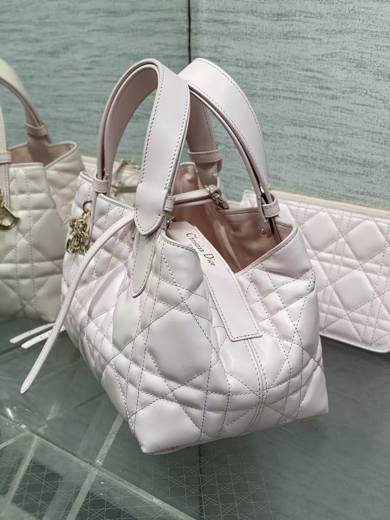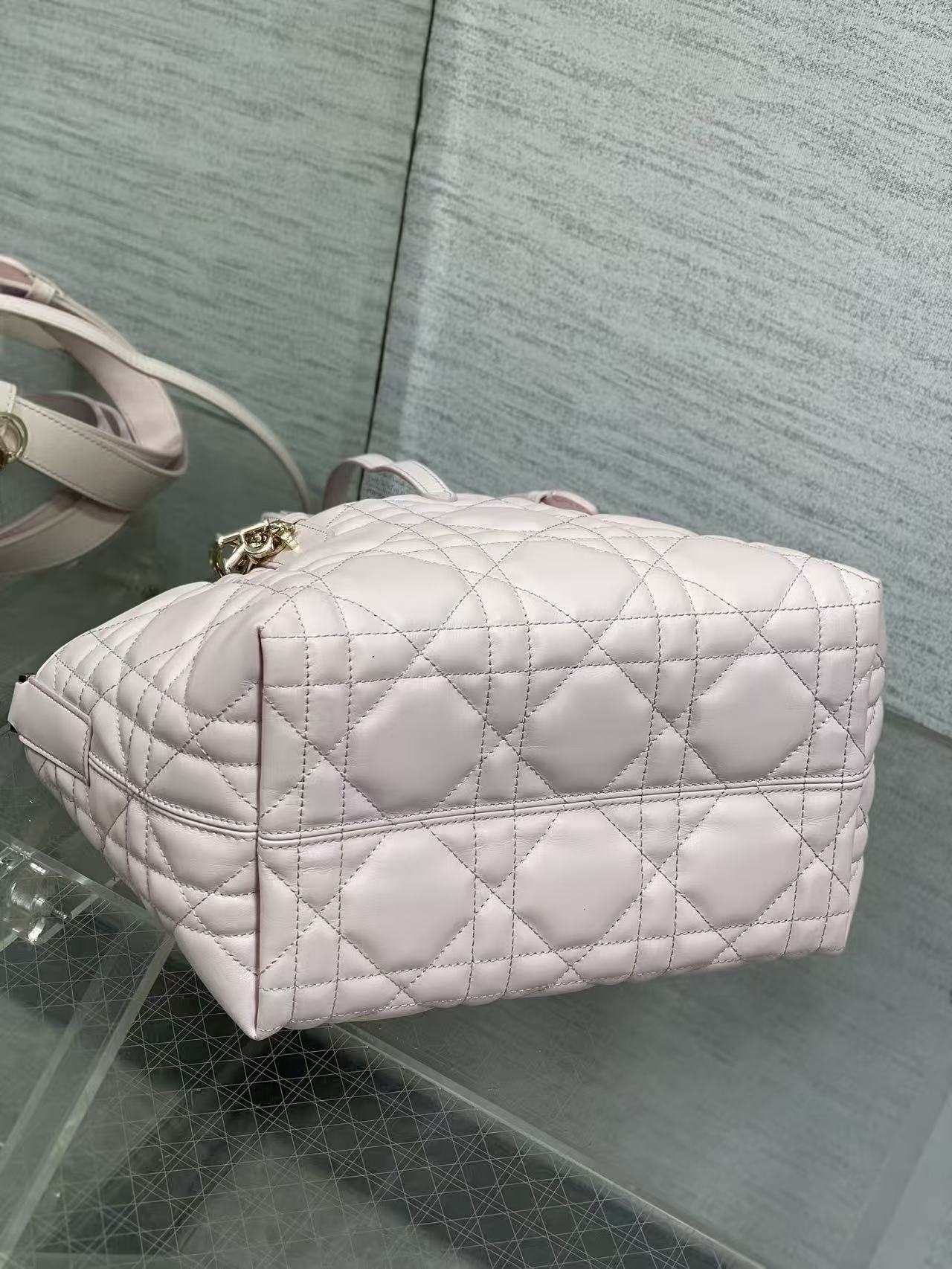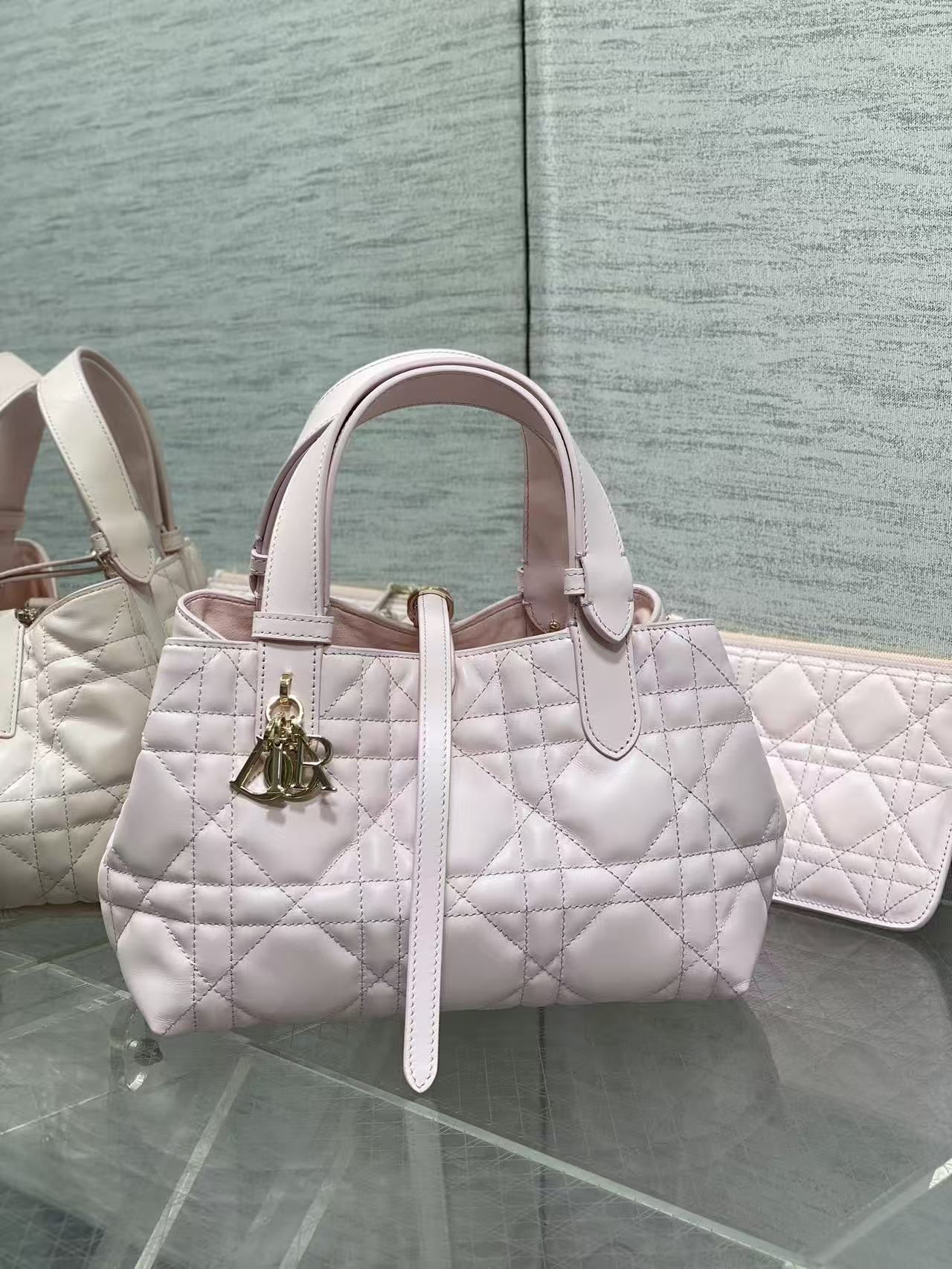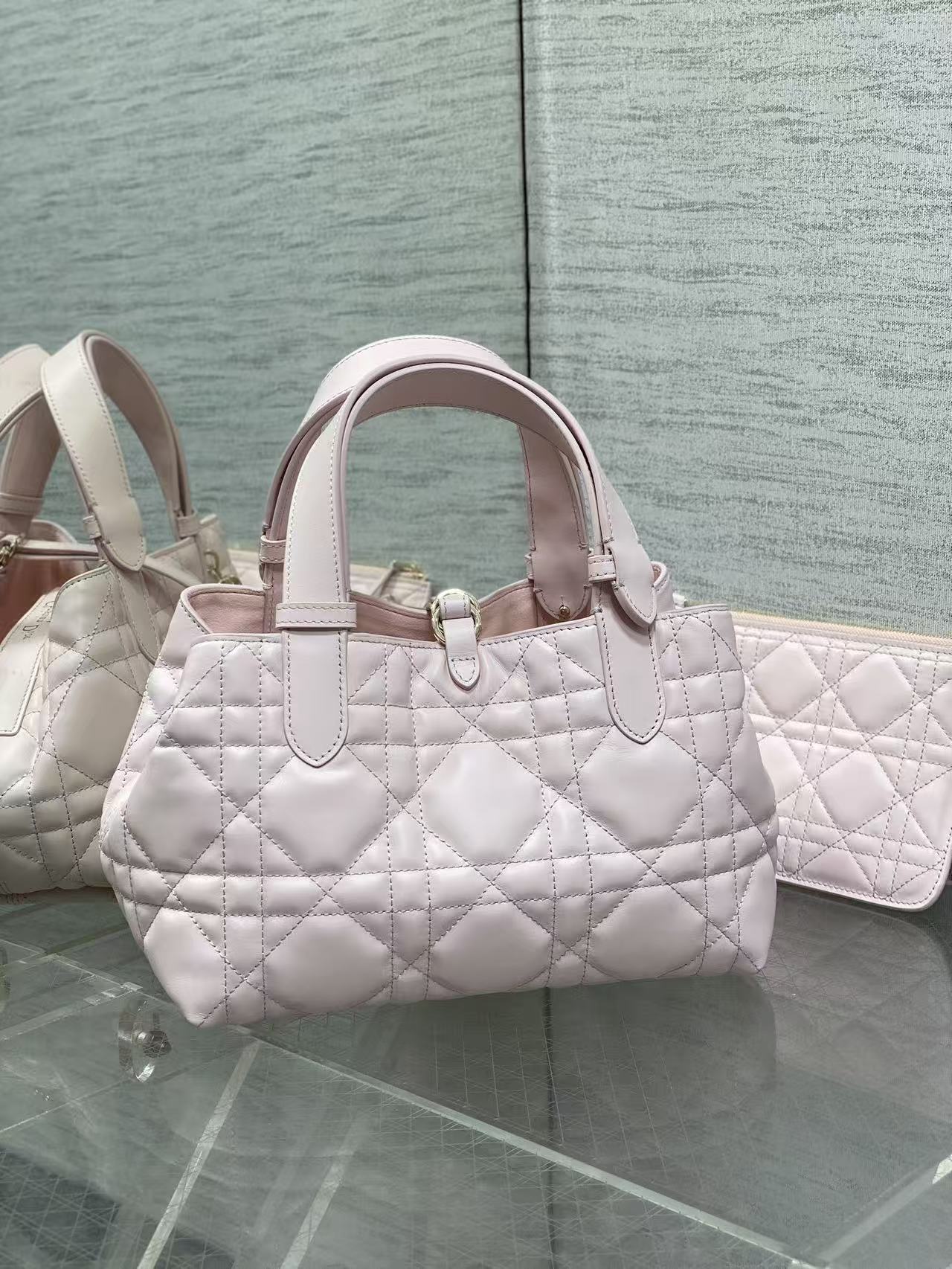Adorned with a signature Dior logo charm in gold-tone hardware, every detail speaks of heritage and refinement. The dual top handles allow for comfortable hand carry or stylish arm-drape presentation, while the removable shoulder strap lets you wear it crossbody or over the shoulder — making it ideal for both casual and formal settings.