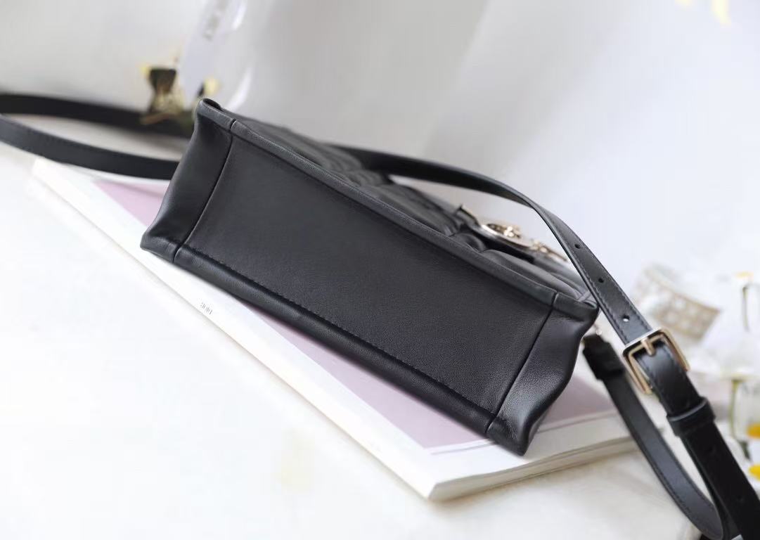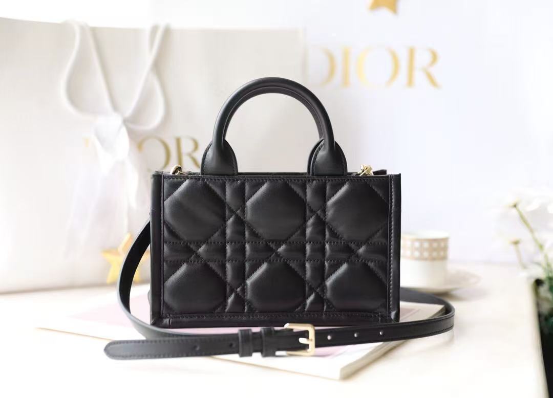 Adorned with a signature CD charm in gold-tone hardware, every detail speaks of heritage and refinement. The dual top handles allow for comfortable hand carry or stylish arm-drape presentation, while the removable shoulder strap lets you wear it crossbody or over the shoulder — making it ideal for both casual and formal occasions.
