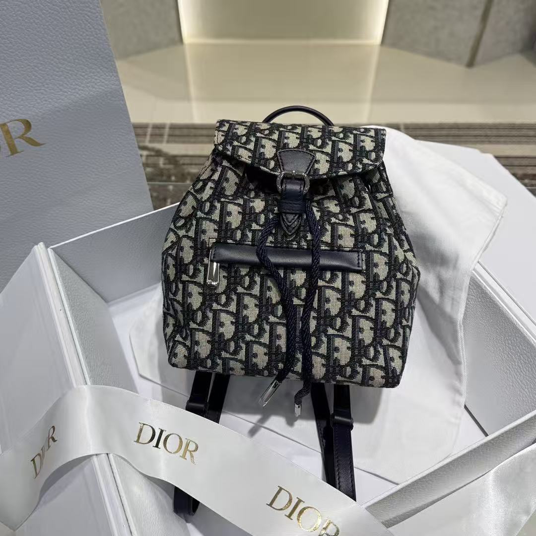 Dior Oblique Print Mini Backpack – Iconic Monogram Canvas, Drawstring Closure, Designer Backpack with Top Handle