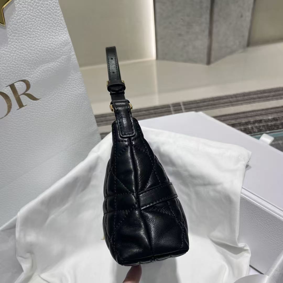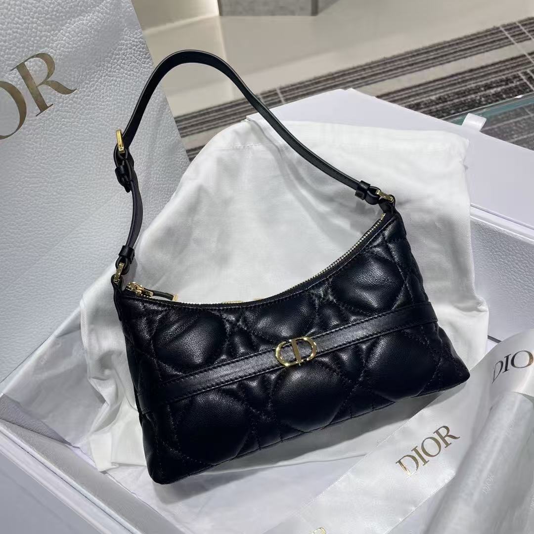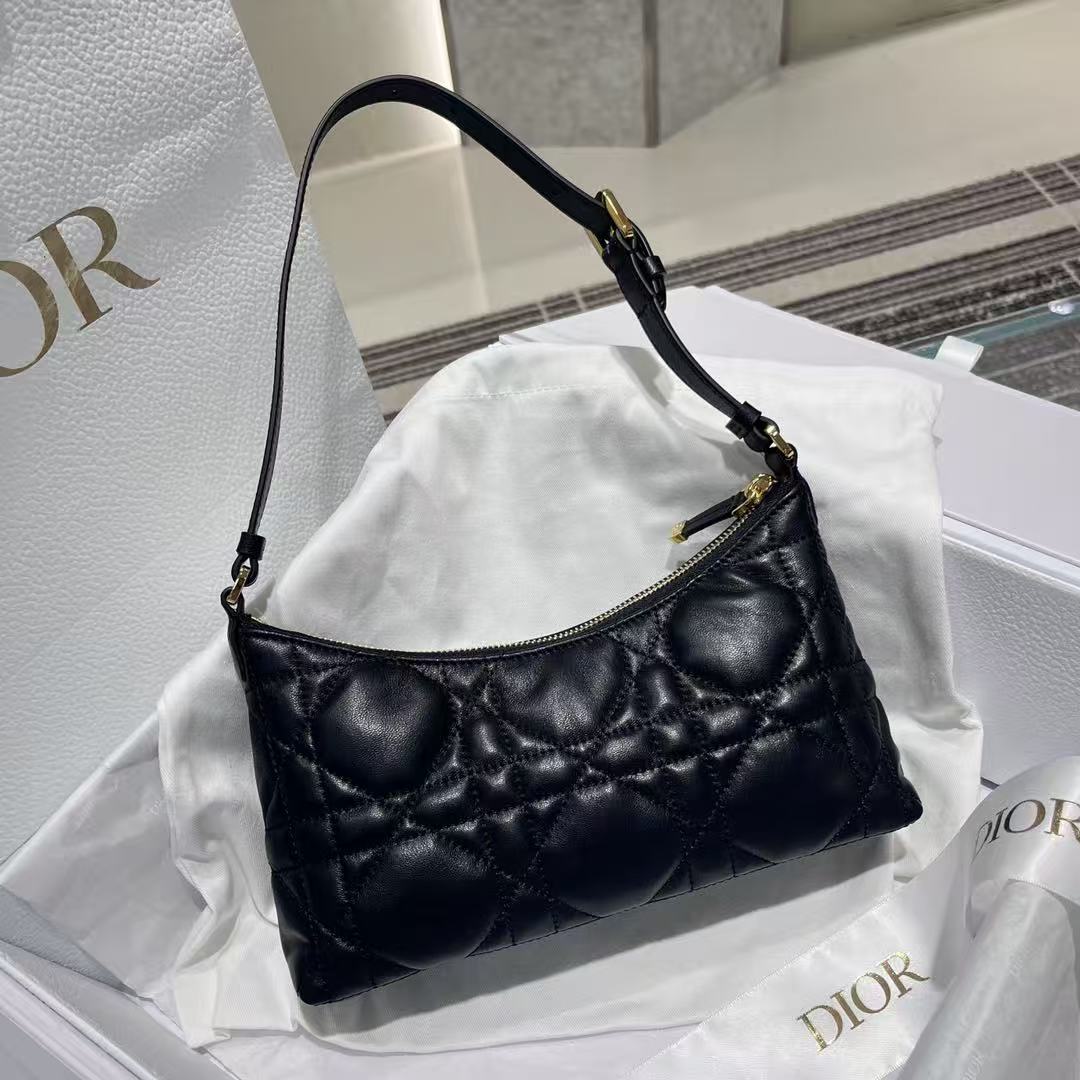 Dior Quilted Shoulder Bag – Iconic Diamond Stitching, Soft Calfskin Leather, Designer Hobo with Adjustable Strap