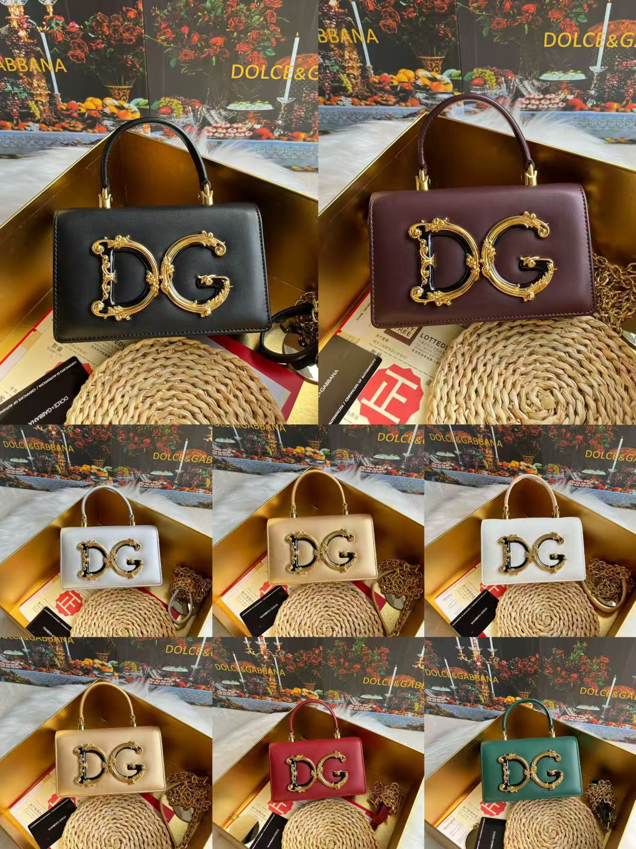 Available in eight stunning colors — black, burgundy, white, gold, beige, red, emerald green, and champagne — each shade brings its own mood: classic, rich, pure, radiant, neutral, bold, vibrant, or soft. The smooth leather surface offers a luxurious feel, while the large, sculptural DG logo clasp serves as both functional closure and visual centerpiece — a true symbol of Italian opulence.
