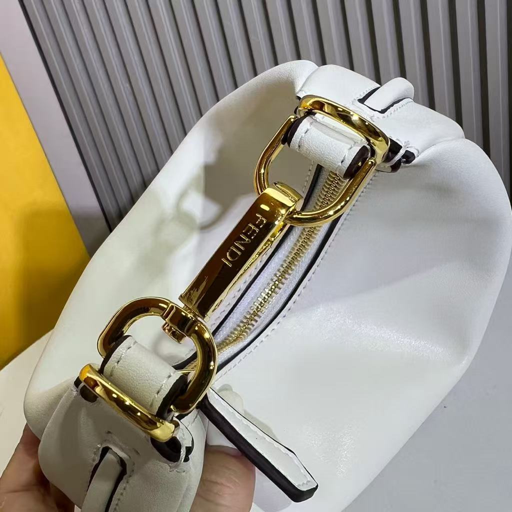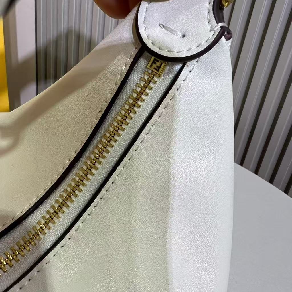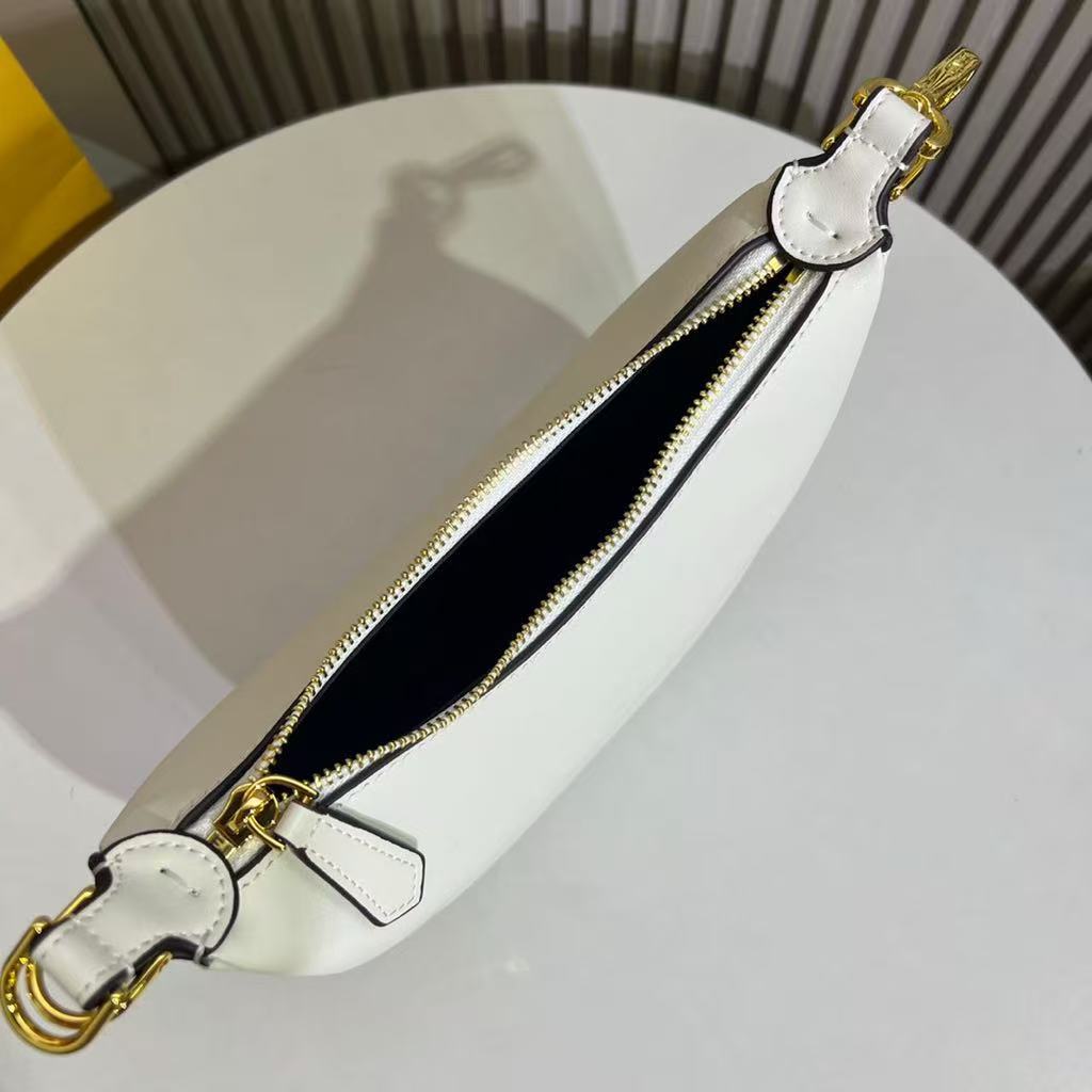 Fendi-Style White Crescent Moon Bag – Smooth Leather, Minimalist Design, Adjustable Shoulder Strap (20×13×7cm)