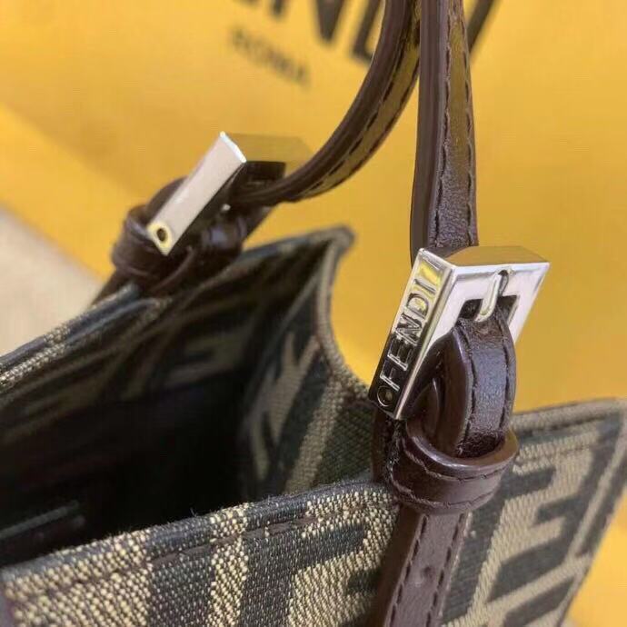 Fendi-Style Zucca Tote Bag – Iconic FF Monogram Print, Metal Buckle Closure, Premium Canvas with Leather Trim