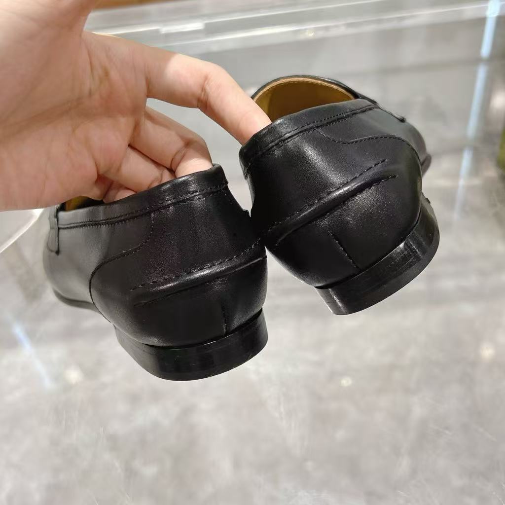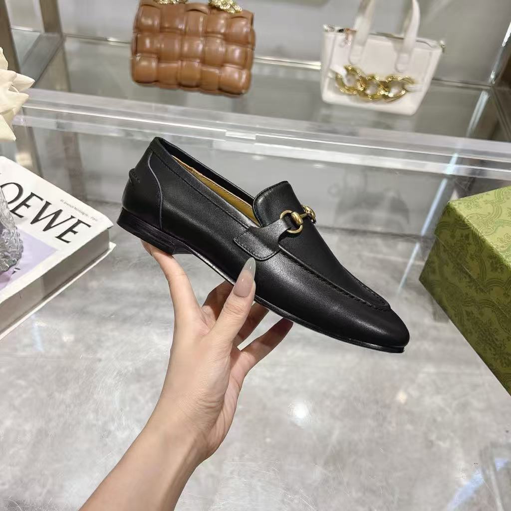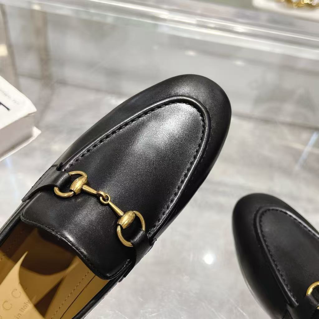 | Premium Black Leather with Subtle GG Monogram Embossing – A refined texture that adds depth and brand heritage without being flashy. Signature Gold-Tone Horsebit Buckle on Vamp – The iconic Gucci hardware that elevates elegance and identity. Comfortable Flat Sole with Rubber Outsole for All-Day Wear – Lightweight, stable, and perfect for daily use. Classic Slip-On Design with Square Toe Silhouette – Timeless shape that pairs effortlessly with jeans, suits, or dresses. Complete Original Packaging: Box, Dust Bag, Care Card & Tag – Authentic luxury presentation ideal for gifting or collection. |