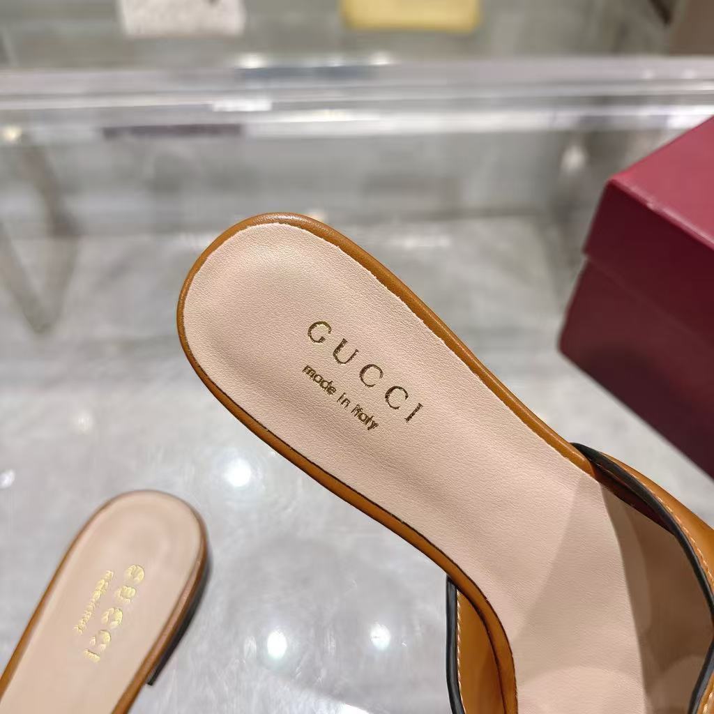 Gucci Brown Leather Slides – Iconic Interlocking GG Cut-Out, Square Toe, Original Box & Dust Bag