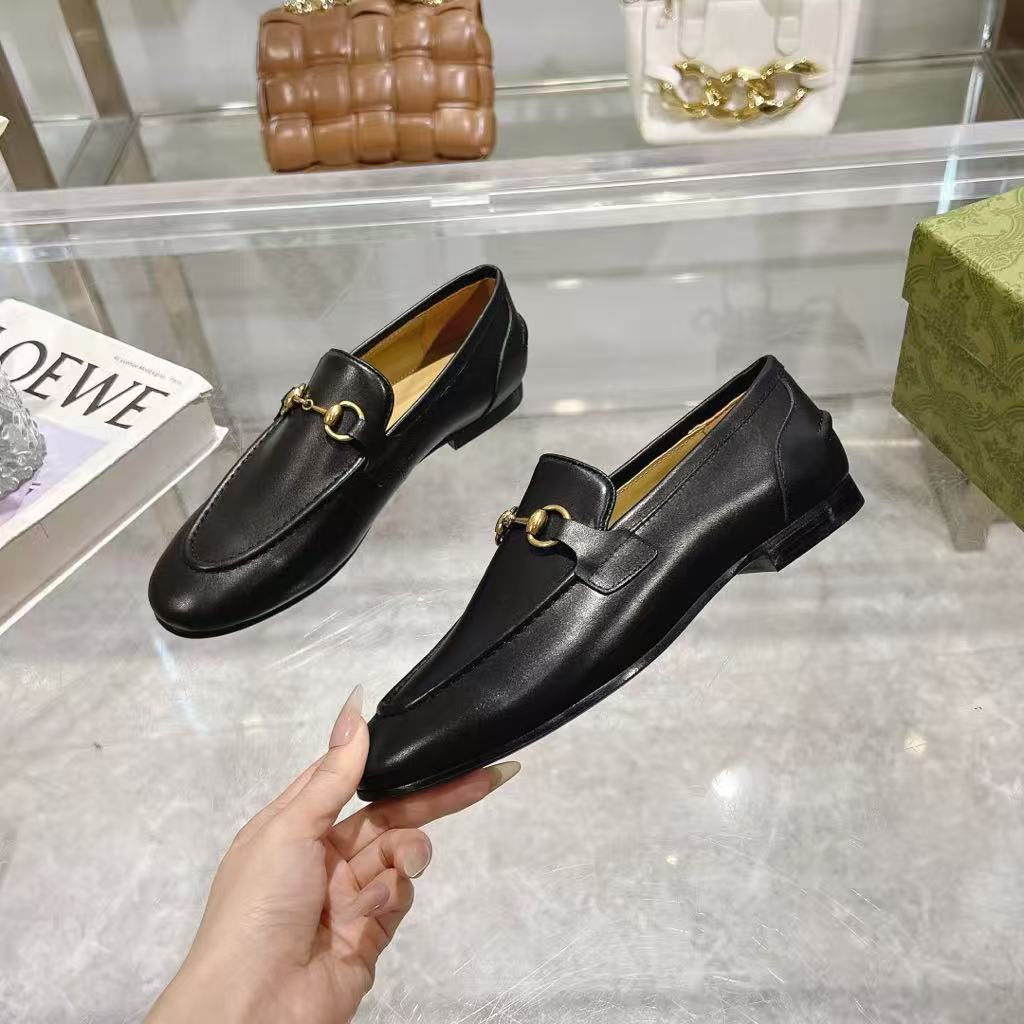 Iconic Gold-Tone Horsebit Buckle on Vamp – The signature Gucci hardware that defines timeless elegance.