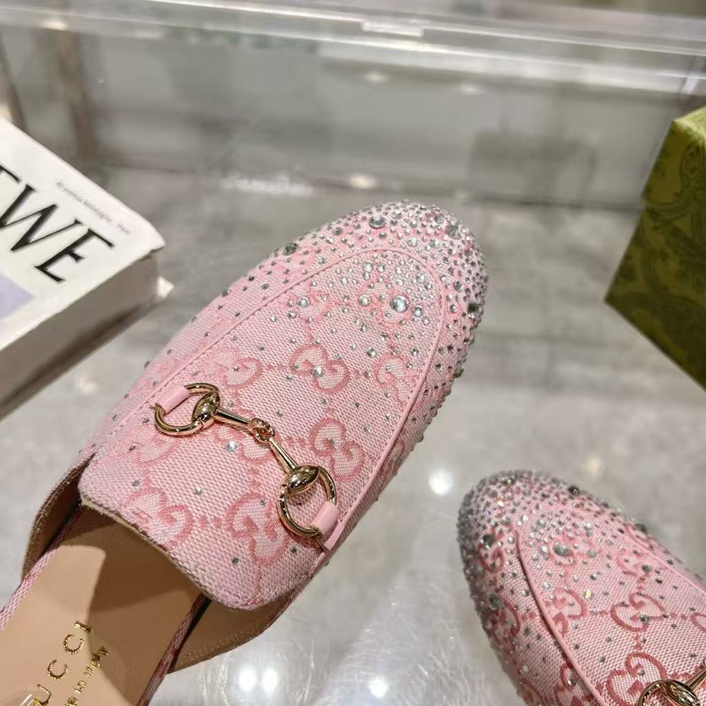 The iconic gold-tone horsebit buckle adorns the vamp — a signature Gucci design element that instantly elevates elegance and recognition. This elegant hardware is both decorative and functional, ensuring a secure and comfortable fit.