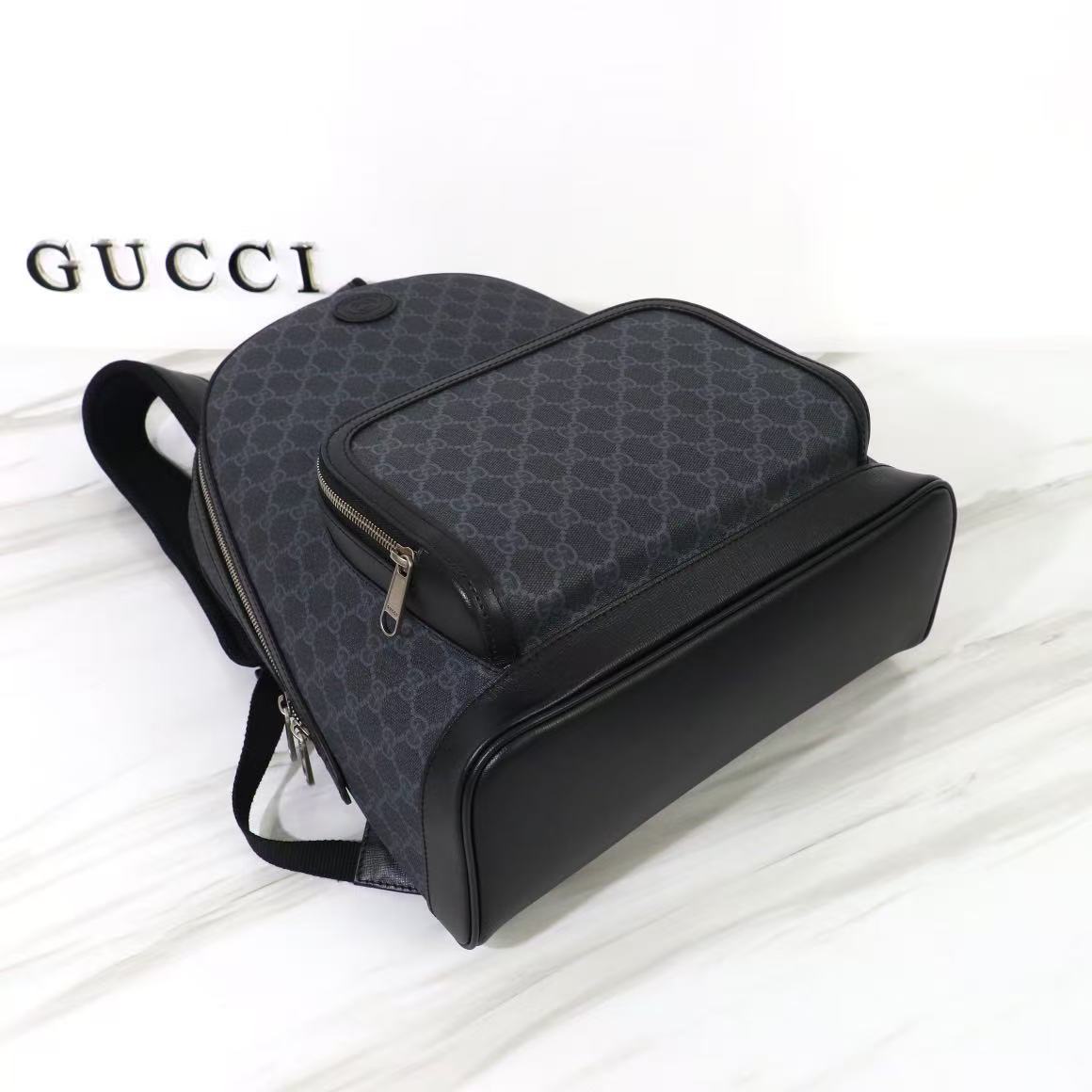 The all-over GG monogram in tonal shades creates a subtle yet striking visual texture, making it both stylish and timeless. The smooth black leather trim enhances durability and adds a polished edge, while the central oval logo patch serves as a signature focal point — embodying Gucci’s iconic design language.