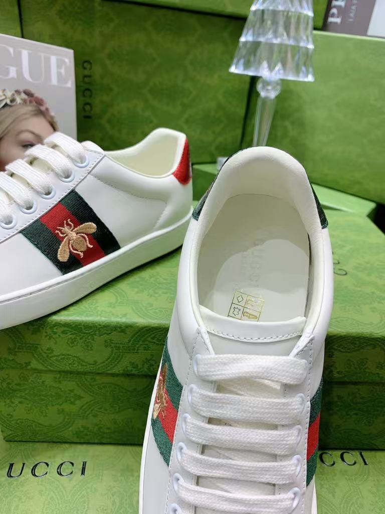 Choose the Gucci white leather sneakers with bee embroidery and let your feet reflect refined storytelling — where white meets gold, nature meets design, and every step feels like a moment of grace.