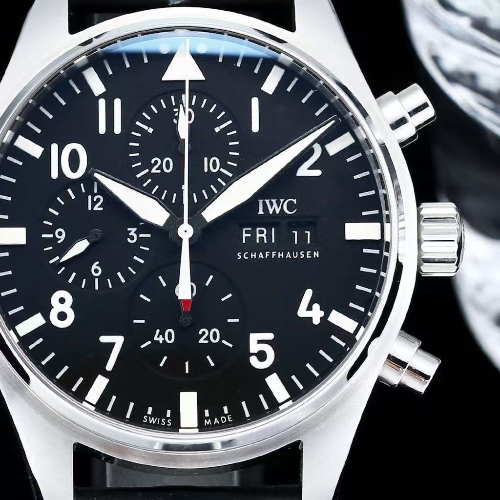 IWC Schaffhausen Pilot’s Watch Chronograph – Black Dial with Date & Day Display, Leather Strap