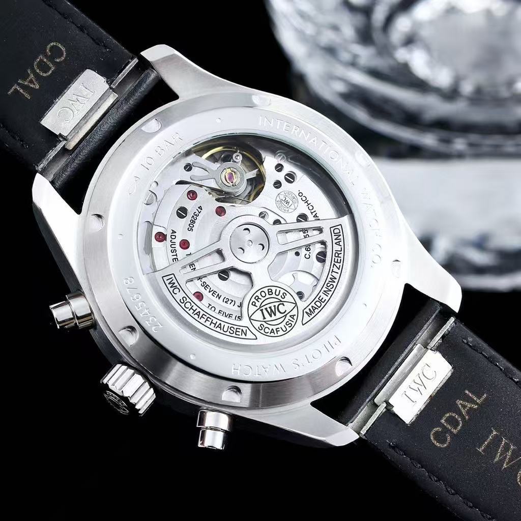 IWC Schaffhausen Pilot’s Watch Chronograph – Black Dial with Date & Day Display, Leather Strap