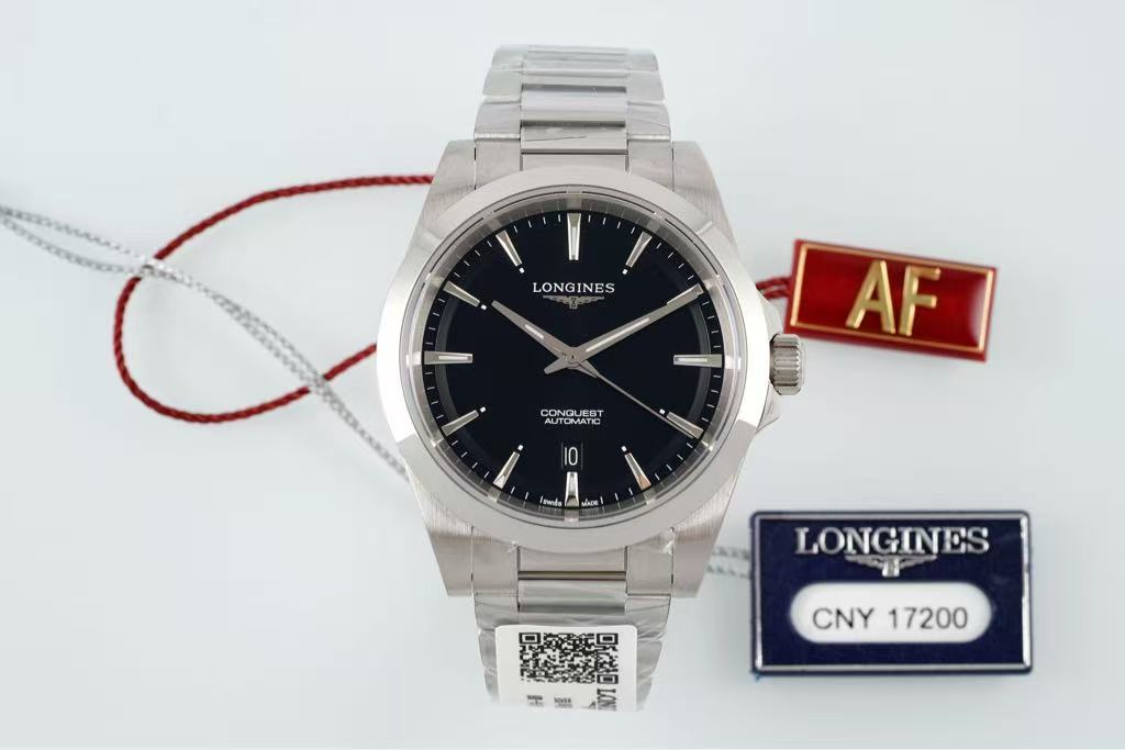 Presented against a clean white background with an AF tag and a price label indicating CNY 17,200, this Conquest model radiates confidence, sophistication, and technical excellence. Whether worn in the boardroom or during casual outings, it is a symbol of modern elegance, precision, and Swiss engineering mastery.