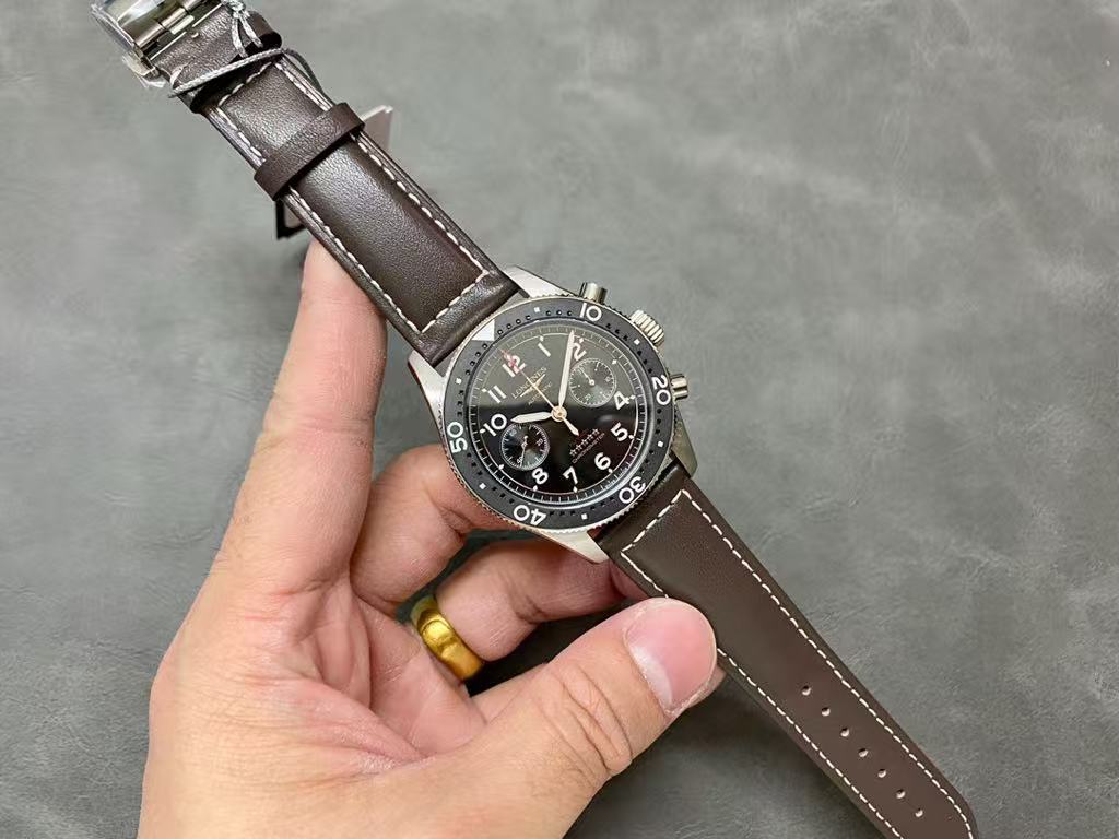 Longines Flyback Chronograph – Men’s Stainless Steel Automatic Watch with Black Dial, Flyback Function, and Brown Leather Strap