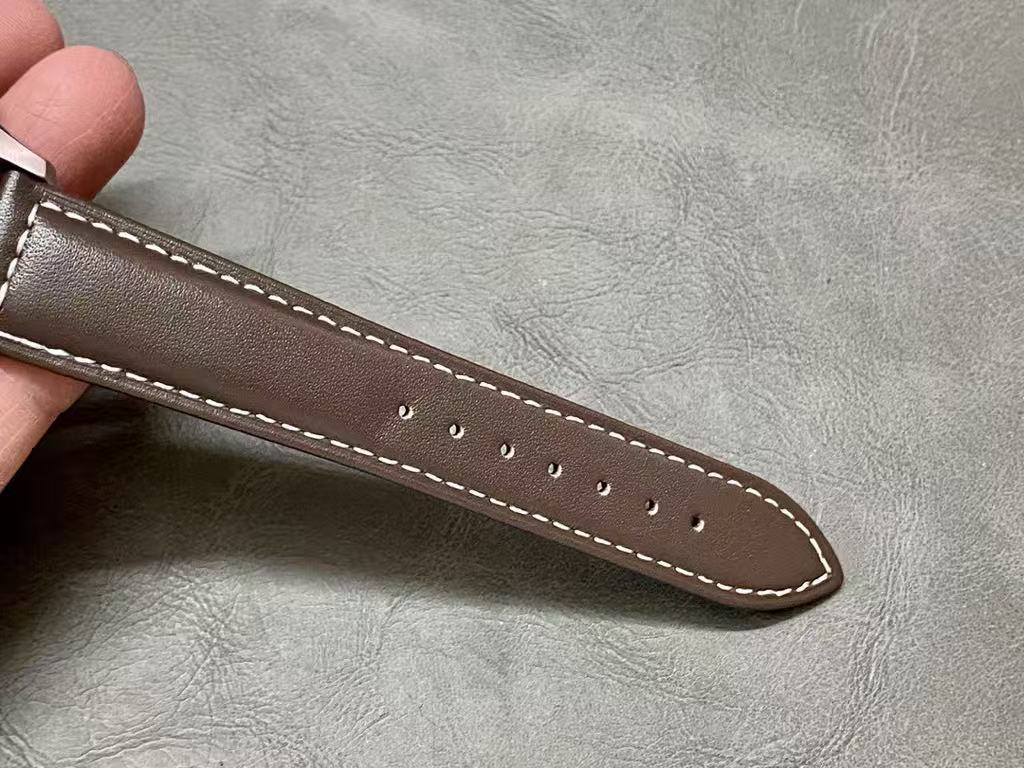 Brown Leather Strap: White stitching, premium texture, and comfortable fit