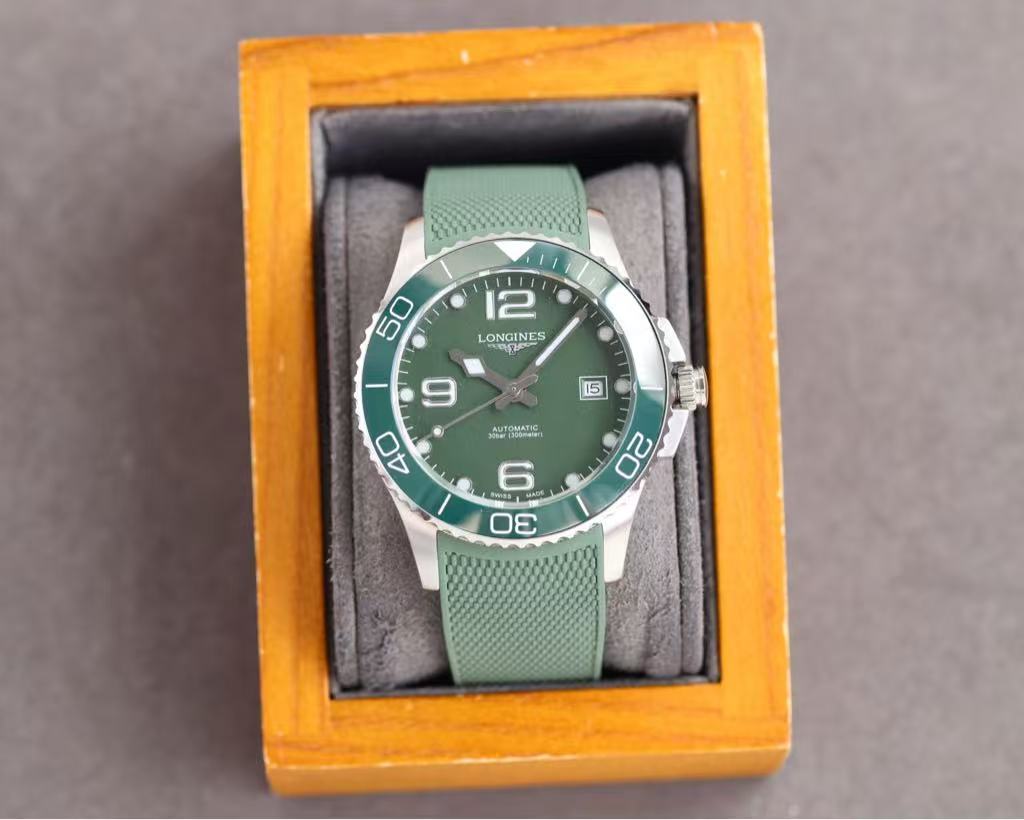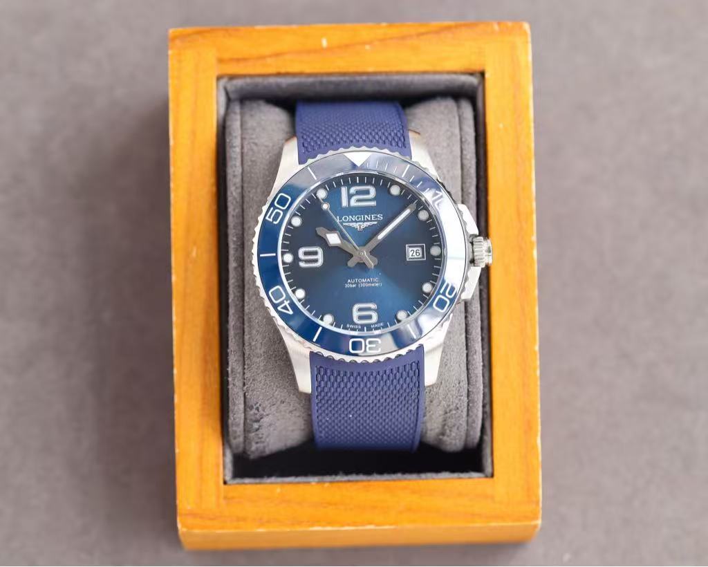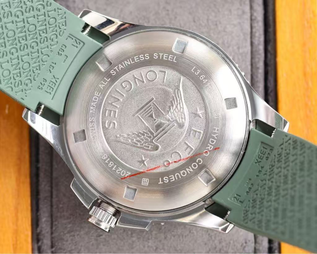 Presented in a classic wooden box with soft gray lining, this HydroConquest radiates strength, confidence, and technical excellence. Whether worn on the ocean floor or in the city, it is a symbol of adventure, precision, and Swiss engineering mastery.